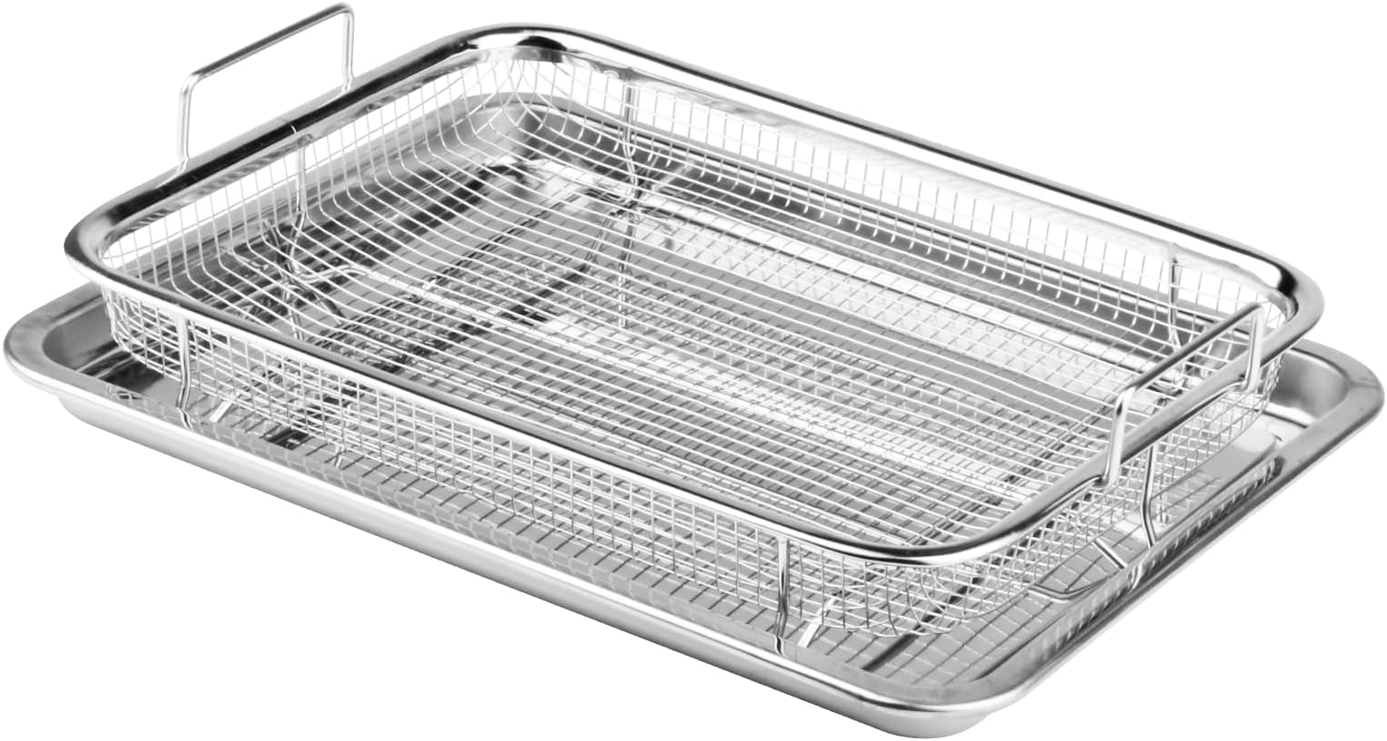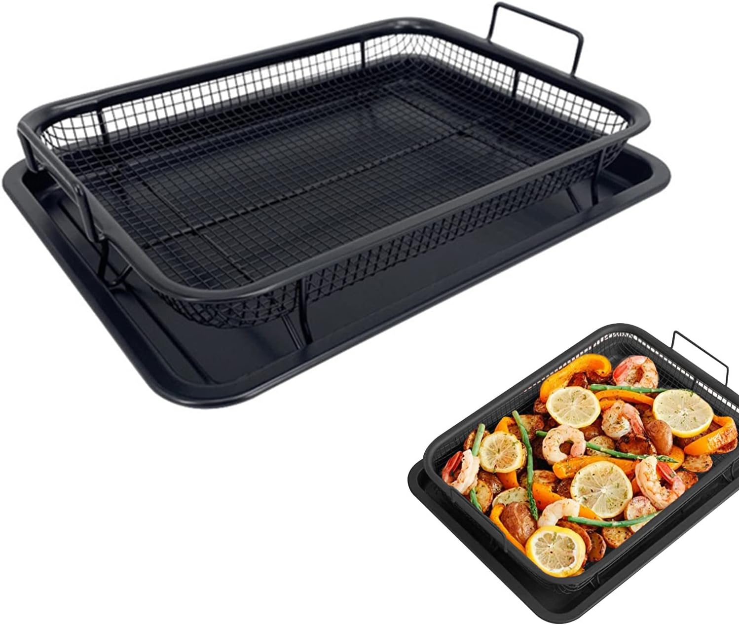 Wow, dieses Backblech mit Grillkorb ist ein echter Allrounder! Aus rostfreiem Edelstahl in Lebensmittelqualität ist es hitzebeständig und super langlebig. Maße: 39,2 x 29,3 x 5,5 cm - also Platz genug für ne ganze Menge Leckereien. Der Grillkorb mit praktischem Griff verhindert, dass was runterfällt, und das Abkühlgitter ist direkt mit dabei. Ob grillen, backen, braten oder einfach nur Gemüse waschen - hier geht alles. Und das Beste: Einfach in die Spülmaschine und blitzsauber. Perfekt für BBQ-Partys oder entspannte Kochabende!