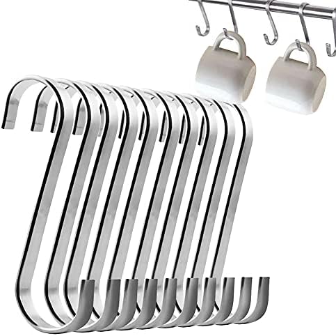 Hey, diese 10 S-Haken aus Edelstahl sind echt praktisch! Du kannst sie überall verwenden - in der Küche, im Bad, im Schlafzimmer, im Büro oder sogar im Garten! Aus robustem Edelstahl - rosten nicht und halten ewig. Perfekt um Töpfe und Pfannen in der Küche aufzuhängen! So hast du alles griffbereit und sparst Platz in den Schränken. Im Bad super für Handtücher, Bademäntel oder Duschzeug. Im Schlafzimmer kannst du Jeans, Hosen, Schals oder Gürtel aufhängen - alles ordentlich und immer in Reichweite! Die Haken haben eine Öffnung - einfach über Stangen, Haken oder Regale hängen und schon sind sie einsatzbereit. Kein Bohren nötig! Im Garten super für Pflanzen, Blumenampeln oder Gartendeko. In der Garage für Werkzeuge, Schläuche oder Gartengeräte. Im Büro für Banner, Kalender oder Kopfhörer. Die Möglichkeiten sind echt endlos! Das 10er-Set ist perfekt - du hast genug für mehrere Räume oder kannst alles an einem Ort aufhängen. Die Haken sind flach - liegen schön an der Wand an und stehen nicht so ab. Edelstahl sieht immer sauber und ordentlich aus - passt in jede Einrichtung! Ob modern, landhaus oder industrial - diese Haken passen überall! Einfach bestellen und loshängen - du wirst überrascht sein, wie oft du sie benutzt!