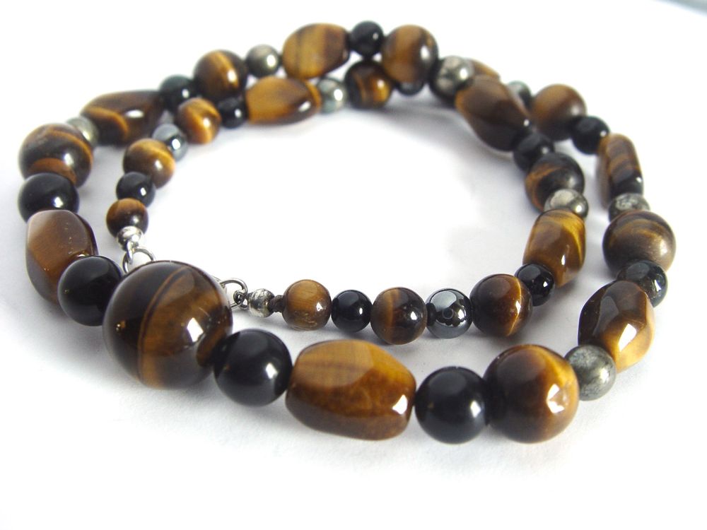 • AstraGlam Edelstein Armband - Tigerauge, Schwarzer Turmalin & Hämatit