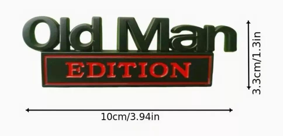 Lustige Auto-Aufkleber gefällig? Die 'Old Man Edition' Embleme bringen Humor auf dein Fahrzeug! Aus Metall gefertigt und wetterfest, halten sie auch bei Regen und Sonne problemlos stand. Mit 10 x 3,3 cm Größe sind sie gut sichtbar, aber nicht zu aufdringlich.