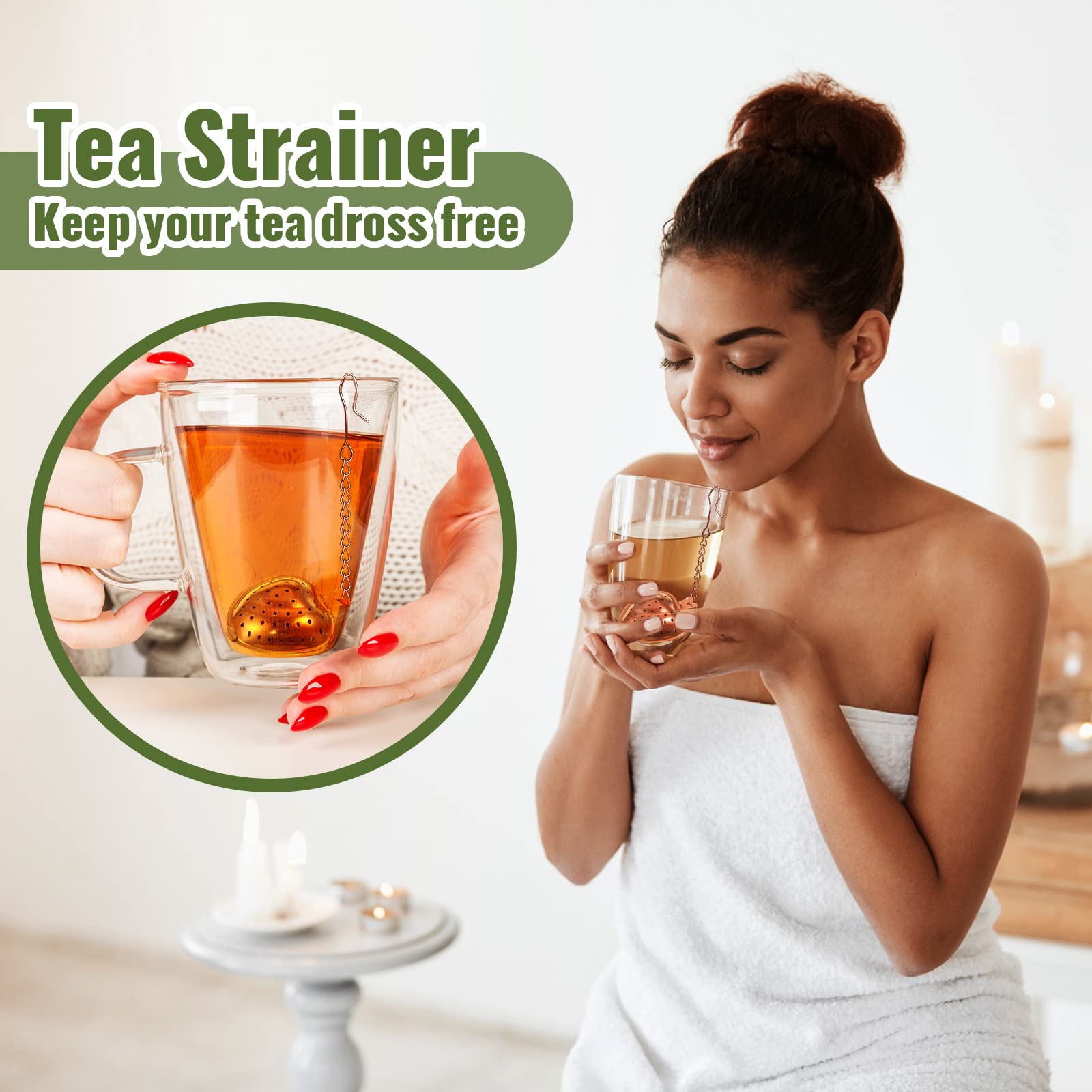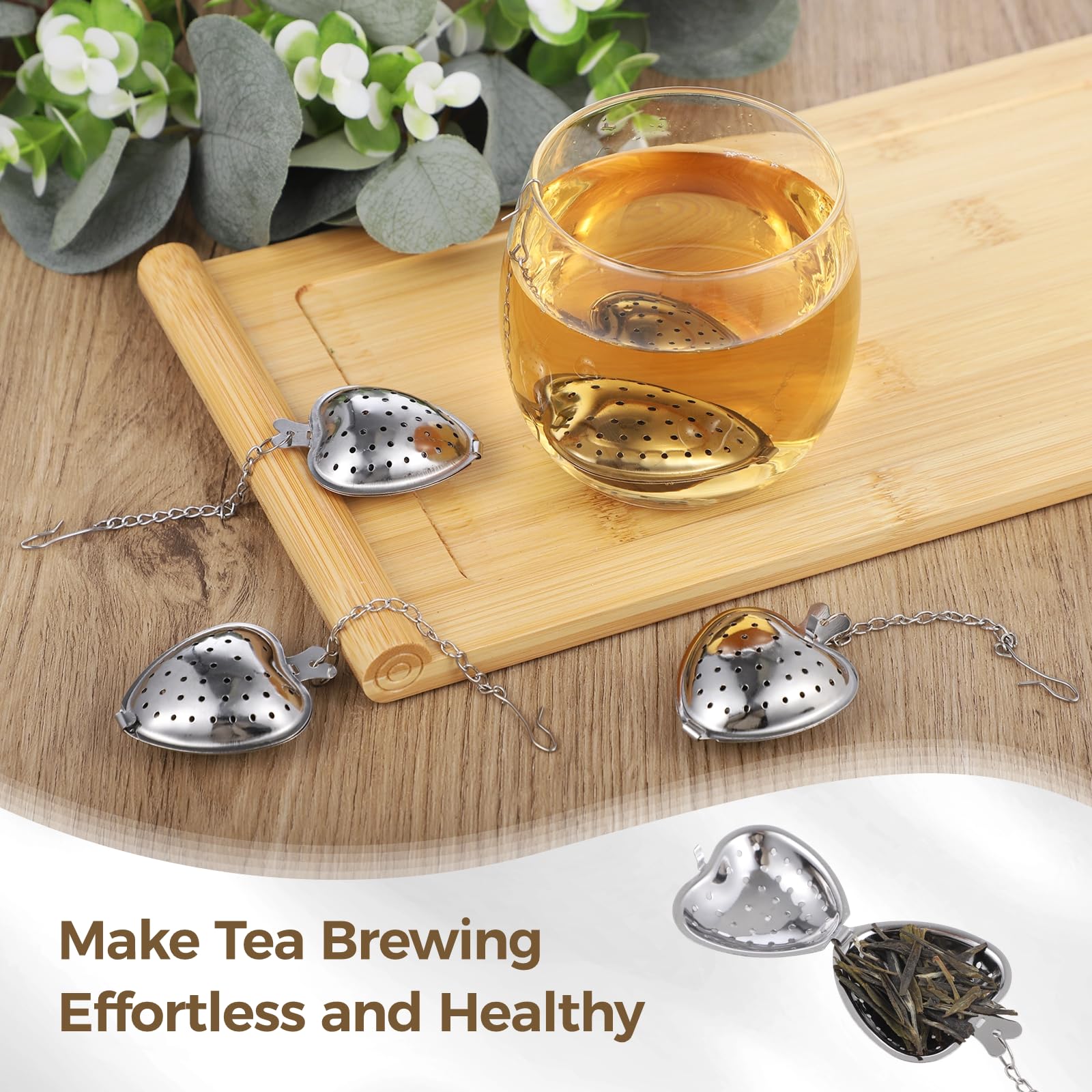 Tee-Zeit mal herzlich! Diese 50 goldfarbenen Tee-Eier aus 304 Edelstahl machen jede Tasse zum Erlebnis. Herzförmiges Design mit feinem Mesh, das keine Teeblätter durchlässt. Mit 9,4cm Kette zum einfachen Herausnehmen - nie wieder heiße Finger! Maße 5,1x4,1cm perfekt für Tassen und Töpfe. Einfach mit losem Tee, Kräutern oder Gewürzen füllen, ins heiße Wasser hängen und ziehen lassen. Spülmaschinenfest und rostfrei - hält ewig! Perfekt als Geschenk für Teeliebhaber oder für den eigenen Vorrat. So wird Teetrinken zum reinsten Vergnügen!