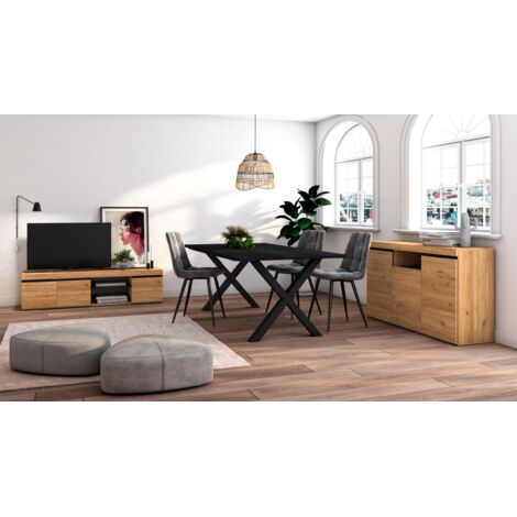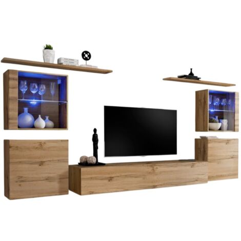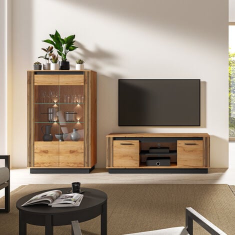 Modernes Wohnzimmer-Highlight! Diese stylische Wohnwand in Eichenweiß bietet Platz für Fernseher bis 60 Zoll und jede Menge Stauraum. Maße: 180x33,5x151,5cm.