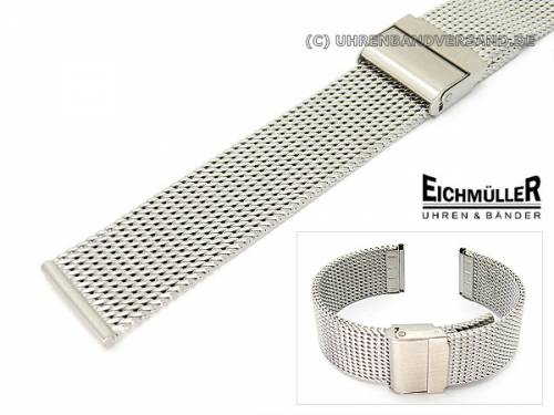 Wow, was für ein edles Uhrenband! Das Eichmüller Milanaise Band verwandelt deine Uhr sofort in ein absolutes Highlight. Aus hochwertigem Edelstahl - sowohl in Silber als auch in Gold (PVD-beschichtet) erhältlich.