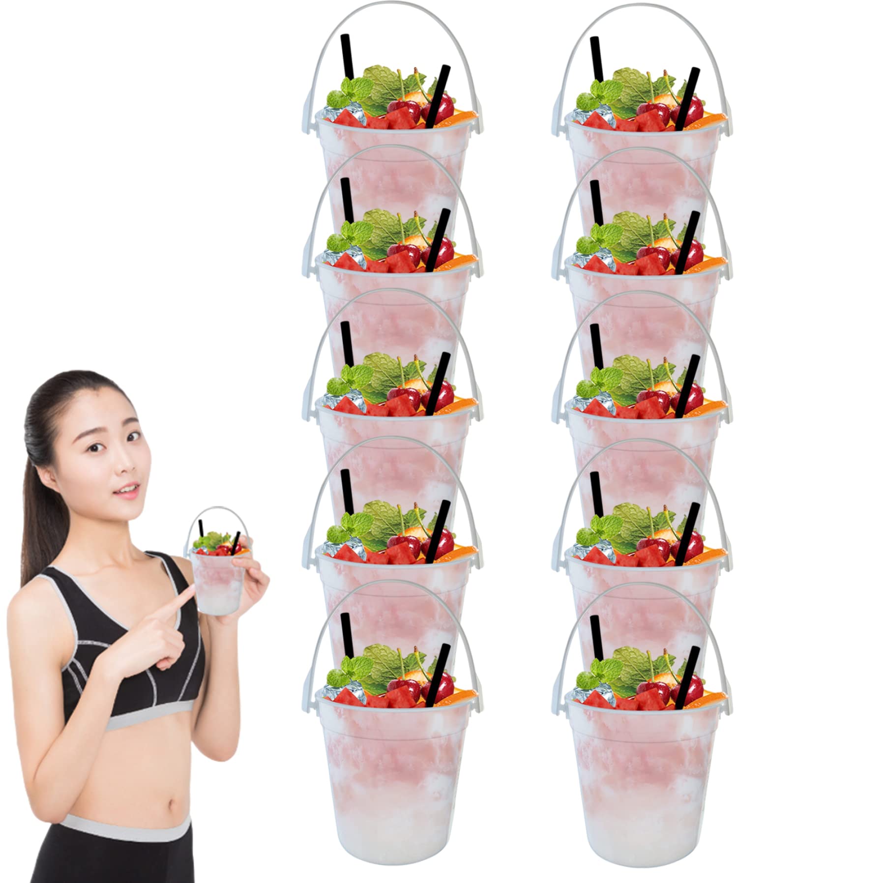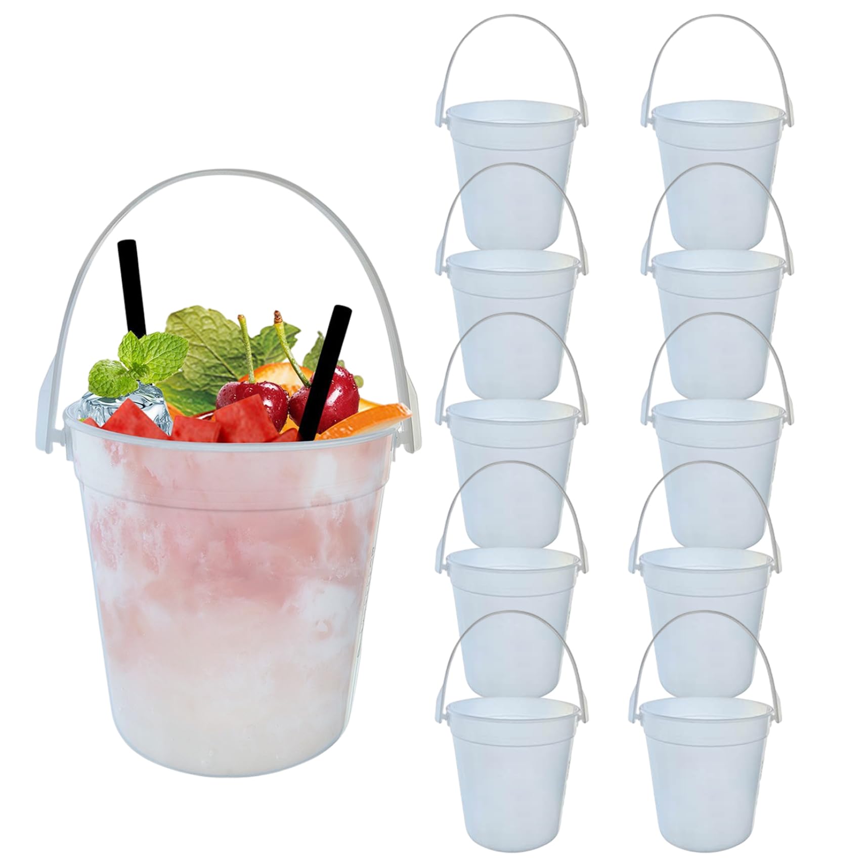 Hey, deine nächste Party kann kommen! Dieses 10er Set mit plastik Eis-Eimern ist perfekt für jede Feier. Jeder Eimer fasst volle 1 Liter - ideal für Cocktails, Bier, Wein oder einfach für Eiswürfel. Die durchscheinenden weißen Eimer sehen aus wie aus deiner Lieblings-Beachbar und passen zu jeder Party-Deko. Mit den praktischen Griffen sind sie super einfach zu tragen und zu handhaben. Ob für die Geburtstagsfeier, Hochzeit, Strandparty oder einfach nur für gemütliche Abende im Garten - diese Eimer sind immer die richtige Wahl. Sie sind spülmaschinenfest und wiederverwendbar, also kein Einweg-Plastik! Du kannst sie sogar als Blumentöpfe oder als Spielzeug für Kinder am Strand verwenden. Mit 11,8x9,5x12,2 cm sind sie handlich aber geräumig genug für alle Getränke. Mach deine Party zum unvergesslichen Event mit diesen stylischen Eimern!