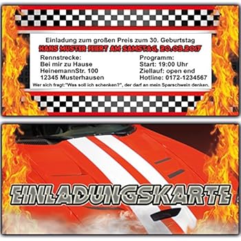 • ZETTMANN Rennwagen Einladungen 10er Set - Kindergeburtstag Einladungskarten