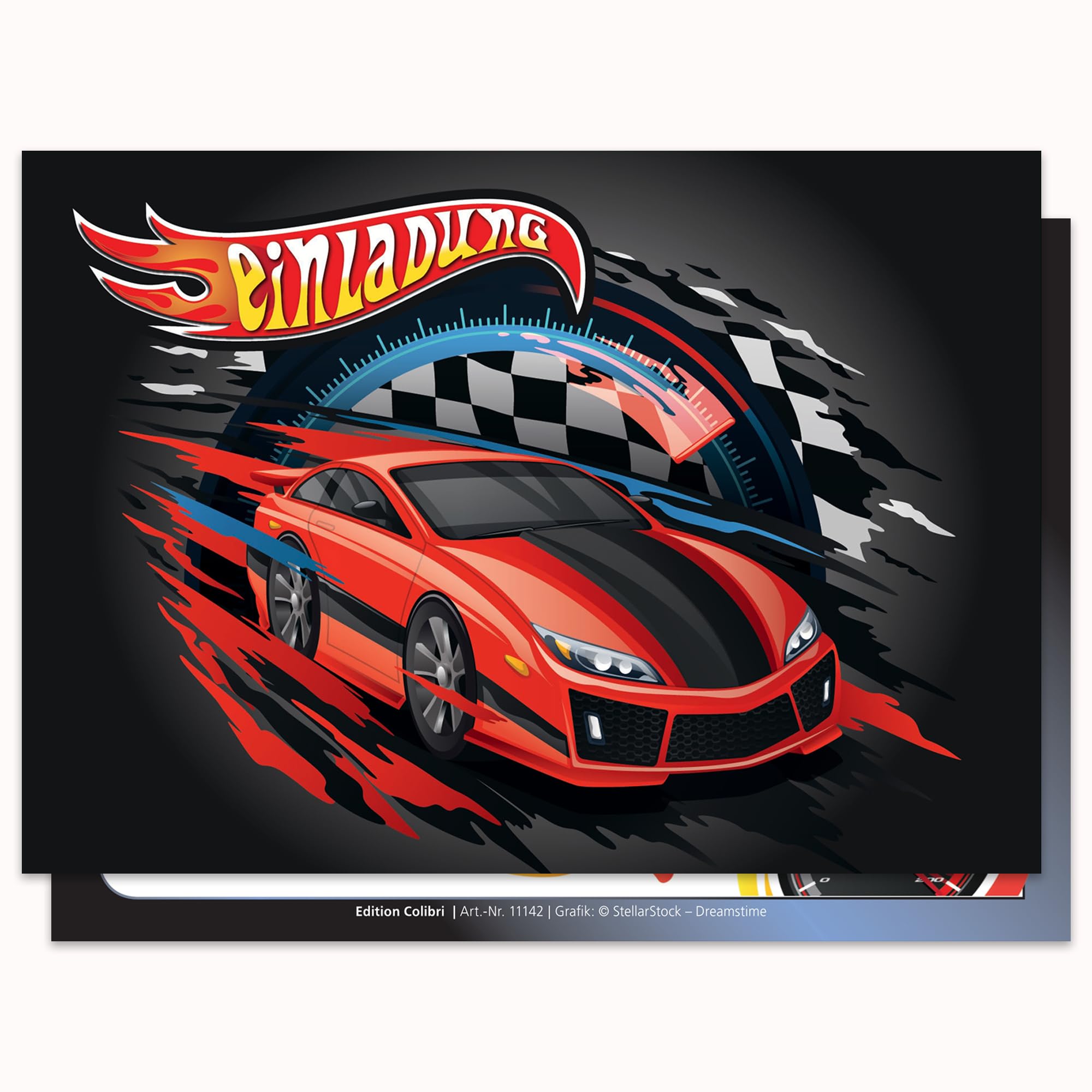 ZETTMANN Rennwagen Einladungen 10er Set - Kindergeburtstag Einladungskarten