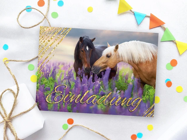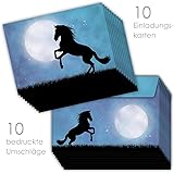 Wie süß sind denn diese Pferde-Einladungskarten? Perfekt für den nächsten Kindergeburtstag auf dem Reiterhof oder einfach für alle Pferdefans! Das Motiv 'Pferd im Mondlicht' ist einfach bezaubernd und wird jedem Mädchen gefallen. Auf der Rückseite kannst du ganz easy alle wichtigen Infos eintragen: Name, Datum, Uhrzeit, Ort und Telefonnummer. Sogar Platz für einen kleinen Wunsch des Geburtstagskindes ist noch! Die Karten im handlichen A6-Format sind auf richtig dickem 300g Karton gedruckt und fühlen sich super wertig an. Die matte Folienkaschierung sorgt dafür, dass du sie super beschriften kannst - egal ob mit Kuli, Filzstift oder Bleistift. Und das Beste: Gedruckt wird klimaneutral in Deutschland! Einfach ausfüllen, verteilen - und die Vorfreude auf die Party steigt sofort. Ob in der Schule, Kindergarten oder im Verein - diese Einladungen sind ein echter Hingucker und machen Lust auf eine tolle Feier!