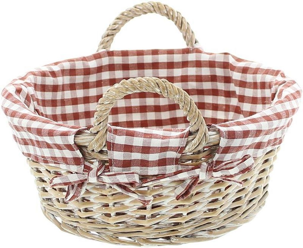 Dieser Weidenkorb von Dekoleidenschaft ist einfach nur niedlich! Die runde Schale im Karo-Design bringt rustikalen Charme in deine Küche. Aus stabiler Spaltweide geflochten und weiß gekalkt, sieht sie total authentisch aus. Die seitlichen Griffe machen das Tragen supereinfach. Das absolute Highlight ist die herausnehmbare Textileinlage in rot-weißem Karomuster - die gibt's so schnell nirgends! Mit etwa 25 cm Durchmesser und 15 cm Höhe ist sie perfekt für Brot, Brötchen oder auch als Deko-Element. Stell sie mal auf den Esstisch, und schon fühlt sich das Frühstück wie im Landhaus an. Ohne Deko geliefert - aber da kannst du deiner Kreativität freien Lauf lassen. Ob mit frischem Brot, Obst oder einfach nur als Hingucker - dieser Korb macht immer eine gute Figur. Perfekt für alle, die es gemütlich und natürlich mögen. Ein Stück Landleben für dein Zuhause!