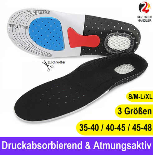 Endlich schmerzfrei laufen! Diese Spezial-Einlagen mit Gel-Kissen helfen effektiv bei Fersensporn und Druckschmerzen. Für Damen und Herren in Größe 35-46 erhältlich - für fast jedes Schuhwerk. Mit modernem Schaumstoff - absorbiert Stöße und entlastet Gelenke. Besonders leicht trotz guter Dämpfung - keine zusätzliche Belastung für die Beine. Ideal für Sport und Alltag - mehr Komfort bei jedem Schritt. Reduziert Ermüdung auch bei langem Stehen oder Laufen. Einfach in die Schuhe legen und sofort besseren Tragekomfort spüren. Macht das Laufen wieder zur Freude - ob beim Joggen oder im Beruf!
