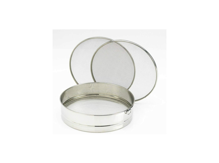 Dieses Profi-Sieb von Artame ist ein echter Alleskönner in der Küche! Mit drei verschiedenen Einsätzen meisterst du jede Sieb-Aufgabe: fein für Mehl und Puderzucker, mittel für gemahlene Mandeln und grob für Fischsuppen oder andere Flüssigkeiten.