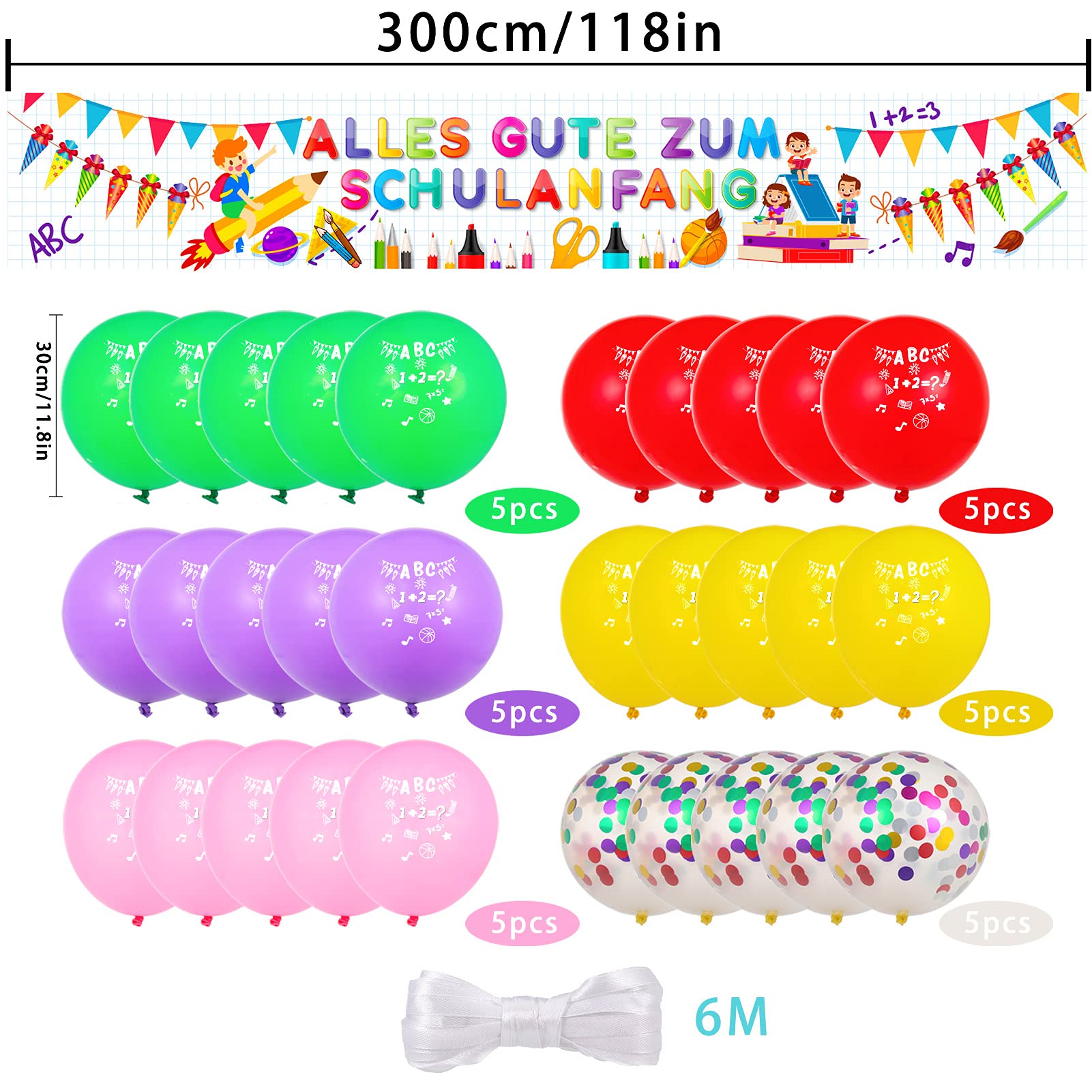 Der erste Schultag ist was Besonderes - und mit diesem fröhlichen Banner wird er unvergesslich! Mit der Aufschrift 'Alles Gute zum Schulanfang' und bunten Luftballon-Motiven sorgt es für sofortige Partystimmung. Mit 300x50 cm ist es groß genug, um überall Aufmerksamkeit zu erregen - ob im Klassenzimmer, zu Hause oder im Garten. Aus robustem Material, hält auch mal einem Regenschauer stand und kann immer wieder verwendet werden. Einfach aufhängen und schon ist die Feier perfekt! Auch super als Geschenk für die Schultüte oder zur Dekoration der Einschulungsparty. Mach den großen Tag deines Kindes zu einem unvergesslichen Erlebnis!