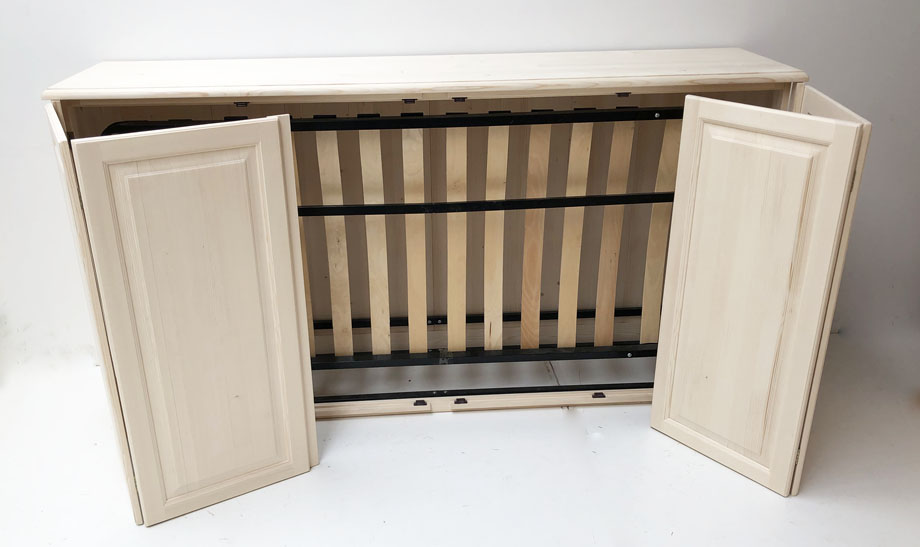 Geniale Platzlösung! Dieses WallBedKing Vertikalbett 90x200cm klappt platzsparend an die Wand und wird zum unsichtbaren Gästebett. Hergestellt in Deutschland mit hochwertigem Gaskolben-Mechanismus.