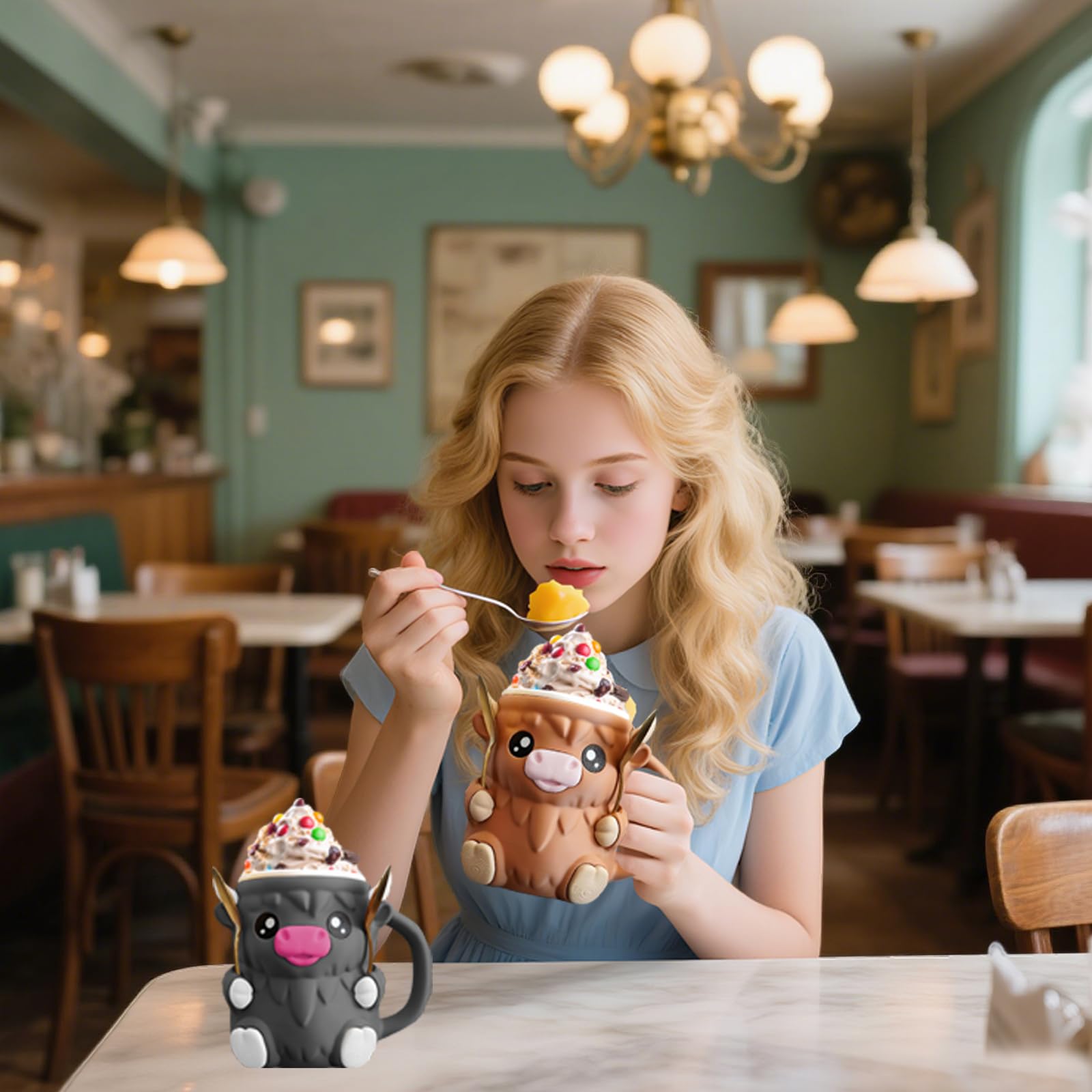 Wie niedlich ist denn das? Dieser Highland Cow Eisbecher-Halter macht das Eisessen zum reinsten Vergnügen! Das detailreiche 3D-Design der schottischen Hochlandkuh sieht nicht nur super aus, sondern schützt auch deine Hände vor der Kälte. Mit praktischem Löffel-Schlitz und geheimer Snackschublade - perfekt für kleine Leckereien. Aus umweltfreundlichen Materialien gefertigt, ist er wiederverwendbar, spülmaschinenfest und hält ewig. Ob für Eiscreme, Eis am Stiel oder sogar Bierdosen - dieser vielseitige Halter ist immer dabei. Ideal für Partys, Picknicks oder als süße Deko auf dem Schreibtisch. Ein absolut einzigartiges Geschenk für alle, die das Besondere lieben. Mach deine Eis-Pausen noch gemütlicher mit diesem charmanten Begleiter!