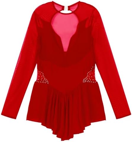 Strahlend schön auf dem Eis! Das Alvivi Eiskunstlauf Kleid für Damen ist ein echter Hingucker. Mit langen Ärmeln, funkelnden Strasssteinen und einem eleganten Mesh-Patchwork-Design. Das Rückenteil mit Schlüsselloch und Druckknöpfen macht das Anziehen leicht. Ein integrierter Slip gibt dir mehr Bewegungsfreiheit, der unregelmäßige Netzrock betont jede Bewegung. Aus weichem, atmungsaktivem Material (50% Polyester, 40% Mesh, 10% Strass), hautfreundlich und angenehm zu tragen. Perfekt für Eiskunstlauf, Tanzwettbewerbe, Bühnenauftritte oder festliche Anlässe. In verschiedenen Größen von S bis XXL erhältlich - bitte die Größentabelle beachten, um die perfekte Passform zu finden. Sieh aus wie eine Profi-Läuferin und genieße den Auftritt!