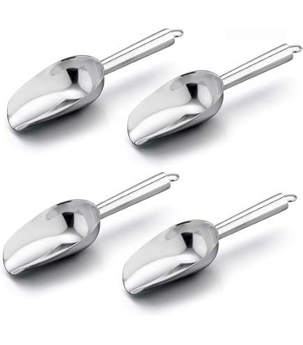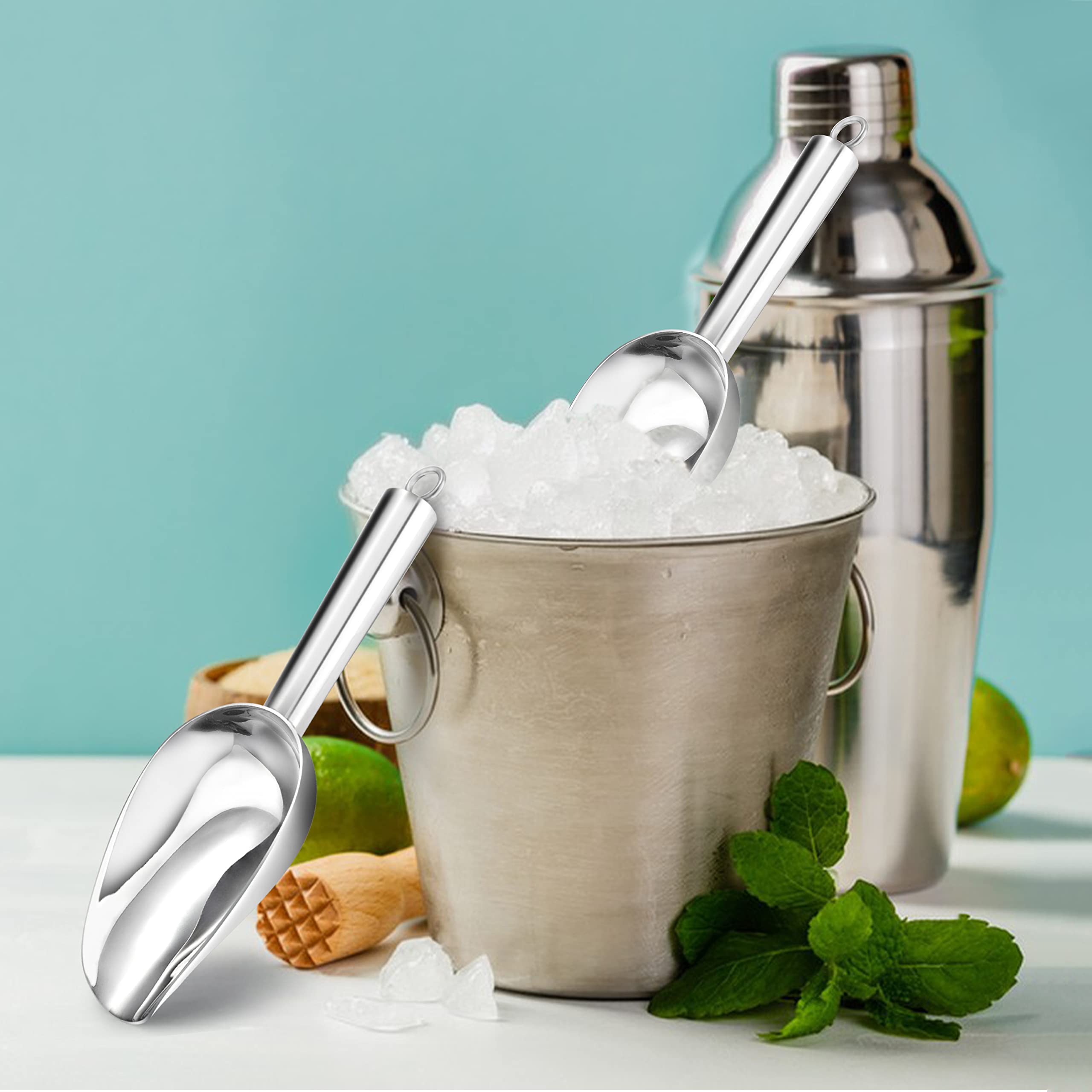 Diese beiden Edelstahl-Schaufeln sind in jeder Küche unverzichtbar! Perfekt für Eiswürfel, Mehl, Zucker, Gewürze oder Kaffee - einfach für alles, was du abmessen oder umfüllen musst. Aus hochwertigem rostfreiem Stahl - absolut lebensmittelecht und leicht zu reinigen. Die leicht gebogene Form macht das Schaufeln super einfach ohne Verschütten. Mit 21cm Länge liegt sie gut in der Hand, und der praktische Aufhänger sorgt für platzsparende Lagerung. Die polierte Oberfläche ist glatt und hygienisch - keine Angst vor Anhaftungen! Einfach nach Gebrauch abspülen oder in die Spülmaschine stecken. Ob in der heimischen Küche, in der Bar, im Café oder für deine Backprojekte - diese Schaufeln erleichtern dir die Arbeit ungemein. Zwei Stück im Set - eine für trockene, eine für feuchte Zutaten? Deine Entscheidung! Einfach praktisch und langlebig!