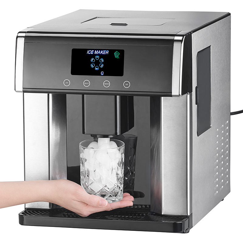 Immer Eis parat! Die NORTHCLAN Eiswürfelmaschine produziert bis zu 14kg Eis pro Tag - perfekt für Partys oder den täglichen Bedarf. Wähle zwischen 2 Eisgrößen: klein für Smoothies, groß für Getränke. Nur 6-8 Minuten für 9 kugelförmige Eiswürfel. Mit praktischer Selbstreinigungsfunktion gegen Kalk. Der leise DC-Kompressor arbeitet mit unter 40dB. Kompakte Maße (22x30x29cm) passen in jede Küche. LED-Anzeige warnt bei \Eis voll\ oder \Wasser nachfüllen\. Ideal für Zuhause, Büro, Wohnmobile oder Camping. Inklusive Eisschaufel und Korb. Sag goodbye zu lästigen Eisschalen!