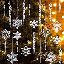 32 Stück Eiszapfen & Schneeflocken Weihnachtsdeko - Acryl Christbaumschmuck Set