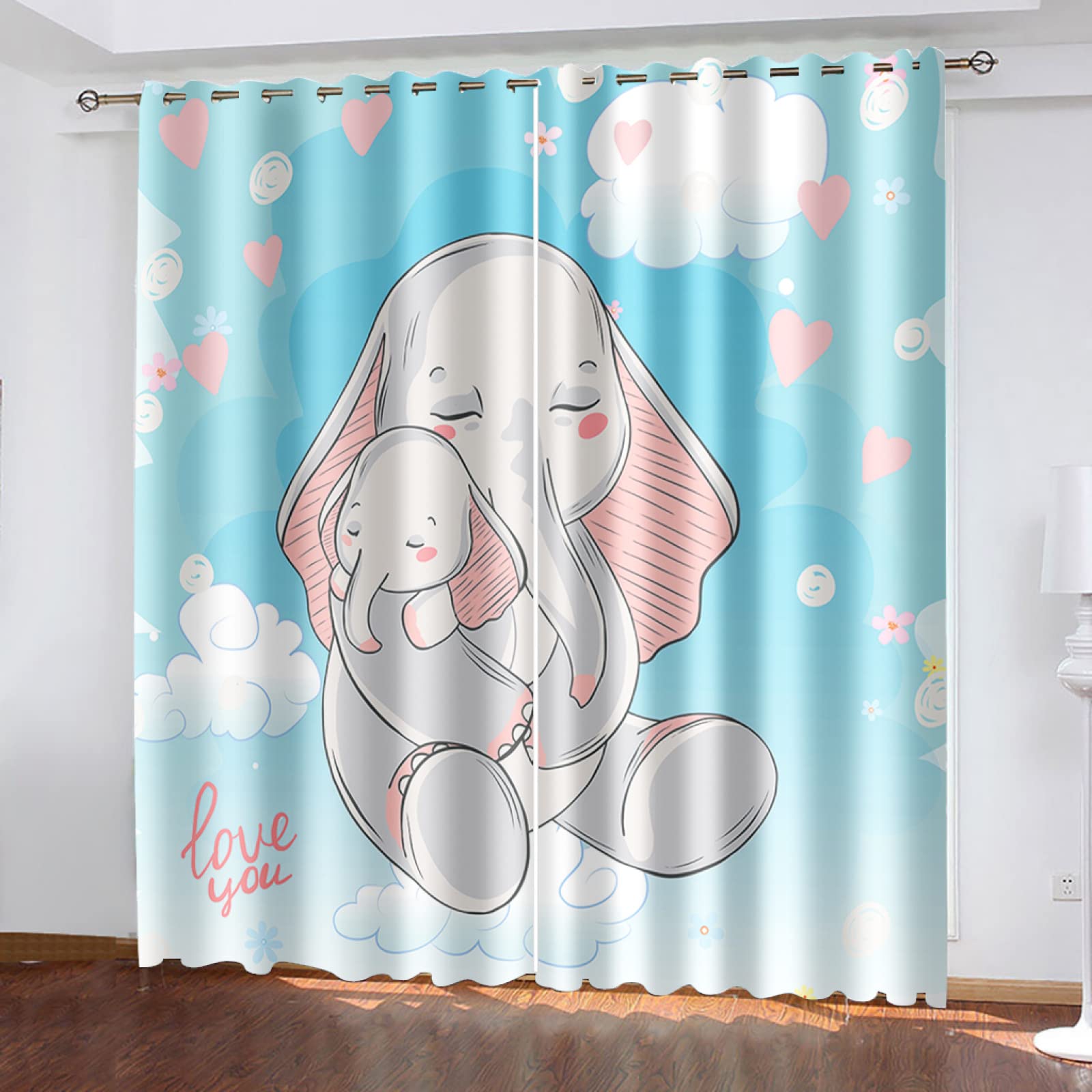 Vorhänge Elefant Design 2er Set - Verdunkelnd & Wärmedämmend