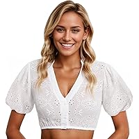 PILUZEAT Dirndlbluse Damen - Elegante Trachtenbluse Mit V-Ausschnitt