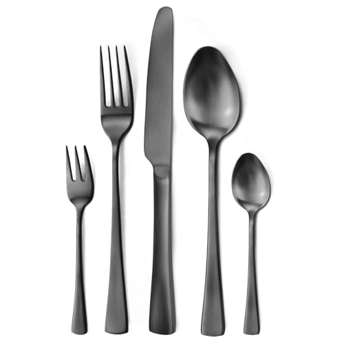 Style deinen Tisch auf! Dieses 60-teilige Besteck-Set in elegantem Schwarz macht jede Mahlzeit zum Erlebnis. Service für 12 Personen - perfekt für Familien oder wenn mal Gäste kommen!