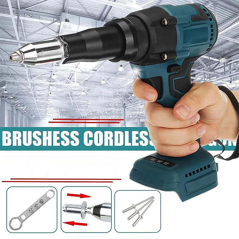 Professionelles Nieten war noch nie so einfach! Diese blaue 18V Nietpistole arbeitet komplett kabellos und gibt dir maximale Bewegungsfreiheit. Mit bürstenlosem Motor für hohe Effizienz und lange Lebensdauer. Perfekte Einhand-Bedienung - einfach den Knopf drücken und schon zieht sie die Nietmuttern fest. Kompatibel mit Nietspezifikationen von 3,2-4,8mm und einer Zugkraft von 10kN. Passt zu BL1815, BL1820, BL1840 und anderen 18V Li-Ionen Akkus der B-Serie (Akkus nicht im Lieferumfang). Ergonomisches Design für komfortables Arbeiten auch bei längeren Einsätzen. Ideal für Industrie, Handwerk und Heimwerker-Projekte. Mit praktischem LED-Licht für bessere Sicht in dunklen Ecken.