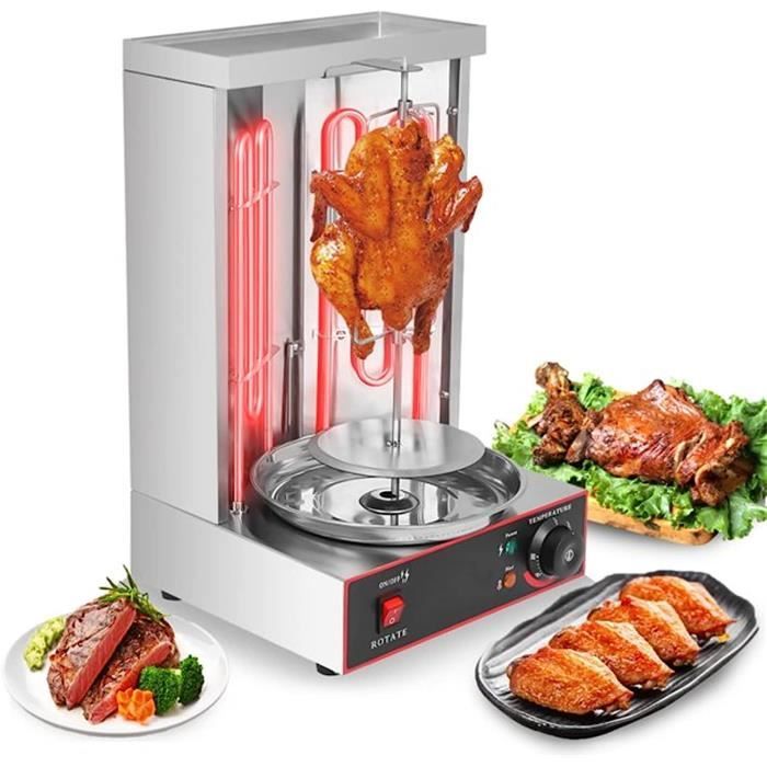 Döner-Genuss wie beim Profi - jetzt für Zuhause! Dieser elektrische Vertikalgrill mit 2,5KW Leistung brät dein Fleisch gleichmäßig und knusprig. Die U-förmigen Heizrohre sorgen für perfekte Hitzeverteilung. \\n\\nTemperatur von 50-300°C einstellbar - ideal für Hähnchen, Pute oder Schwein. Der drehbare Spieß gibt dir authentisches Döner-Feeling. Automatische Abschaltung bei Überhitzung für maximale Sicherheit. \\n\\nAus rostfreiem Edelstahl, leicht zu reinigen. Perfekt für Partys, Familienfeiern oder wenn du mal was Besonderes kochen willst. Hol dir den Geschmack der Imbissbude nach Hause!