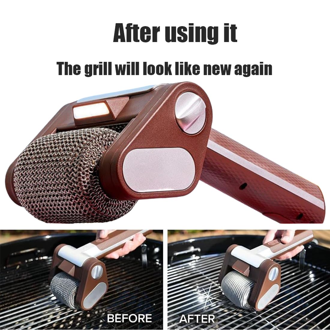 Grillreinigung war noch nie so easy! Dieser elektrische Grillreiniger arbeitet komplett borstenfrei - keine losen Metallteile mehr im Essen! Mit abnehmbarer Edelstahl-Trommel aus 304er Edelstahl. Der 350 U/min Motor entfernt selbst eingebrannte Rückstände mühelos. Das integrierte LED-Licht zeigt jeden Schmertz genau an. Kabellos und spülmaschinenfest - einfach zu reinigen. Weicher Softgrip-Griff für ermüdungsfreies Arbeiten. Maße: 24,7x12,6x9,9cm, Gewicht: 680g. Perfekt für jede Grill-Saison!