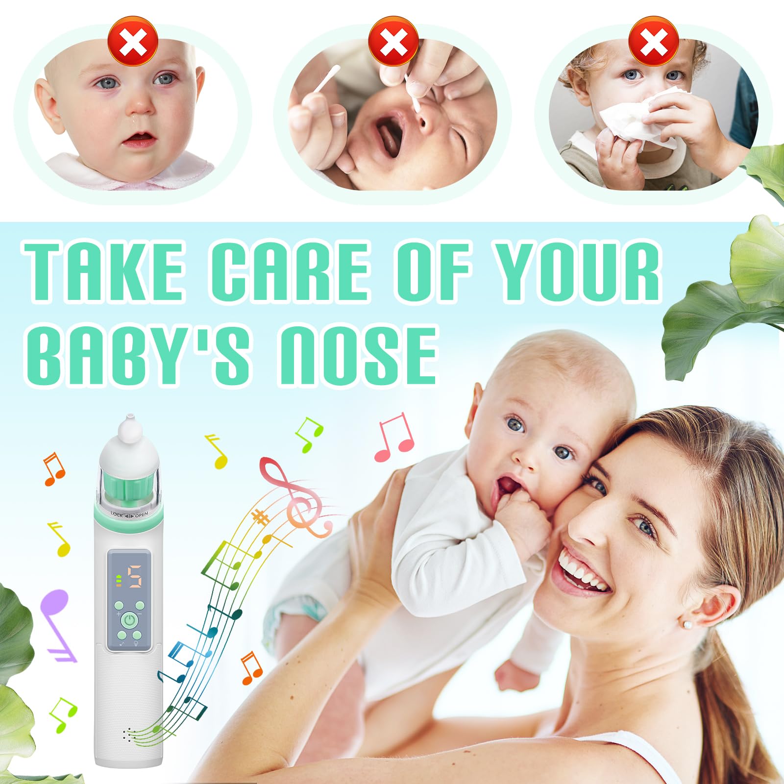 Für alle Eltern, die ihrem Baby bei Schnupfen helfen wollen: Dieser elektrische Nasensauger ist ein echter Lebensretter! Mit 3 verschiedenen Silikonspitzen, die BPA-frei und super weich sind - kein Verletzungsrisiko für die empfindliche Nase deines Kindes. Die Saugkraft ist einstellbar, sodass du sie an das Alter deines Babys und die Stärke der Verstopfung anpassen kannst. Ob Neugeborenes, Säugling oder Kleinkind - hier ist für jeden was dabei. Das Anti-Rückfluss-System verhindert, dass Schleim ins Gerät gelangt - super hygienisch und leicht zu reinigen. Und das Beste: Beruhigende Musik und sanftes Licht lenken dein Baby ab und machen die Prozedur weniger stressig. Kompakt und per USB aufladbar - ideal für zu Hause und unterwegs. Im Set enthalten: Sauger, 3 Silikonspitzen, USB-Kabel und ne Aufbewahrungstasche. Wenn dein Kind also mal wieder schnieft und hustet, kannst du schnell und sicher helfen. Einfach einschalten, Saugstufe wählen, und schon kann dein Baby wieder frei atmen - was will man mehr?