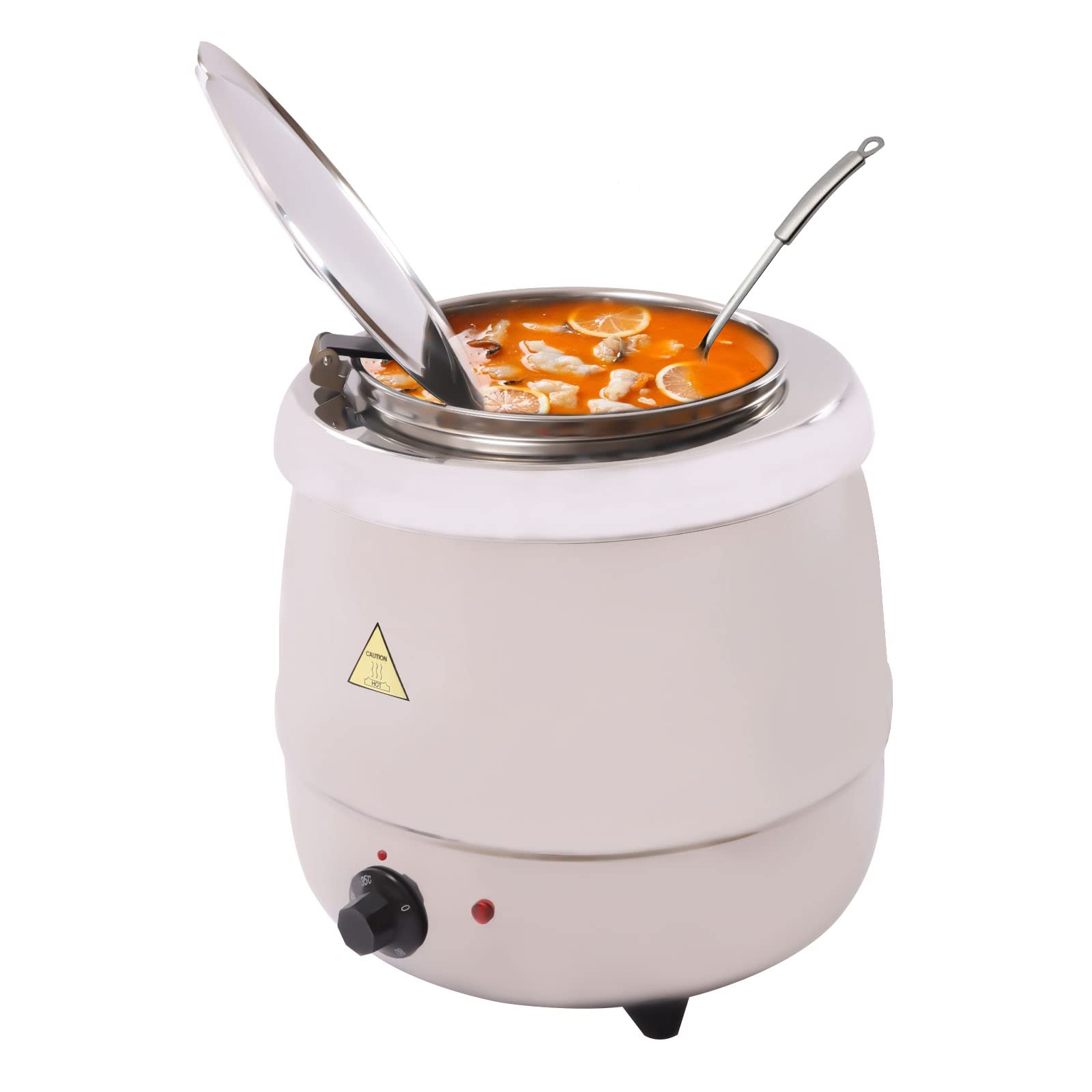 Perfekt für Partys, Familienfeiern oder die Gastronomie! Dieser elektrische Suppenwärmer hält deine Suppen, Soßen und Eintöpfe stundenlang auf perfekter Temperatur. Mit nem riesigen Fassungsvermögen von 10 Litern ist genug für alle da! Die Temperatur lässt sich stufenlos von 35°C bis 80°C einstellen - ideal für verschiedene Speisen. Der Innentopf aus Edelstahl ist nicht nur super hygienisch, sondern auch ganz easy zu reinigen. Das Gehäuse aus Gusseisen ist robust und standfest. Besonders praktisch: Die Wasserstandslinie hilft dir, die richtige Menge Wasser einzufüllen und die Löffelöffnung hält deinen Schöpflöffel griffbereit. Einfach zusammenstecken, Temperatur einstellen und schon bleibt deine Suppe warm! Ob für ne große Familie, ne Feier oder im Restaurant - mit diesem Wärmer musst du dir keine Sorgen machen, dass das Essen kalt wird. Einfach genial für alle, die gerne kochen und Gäste bewirten! Deine Suppe wird allen schmecken - und vor allem warm bleiben!