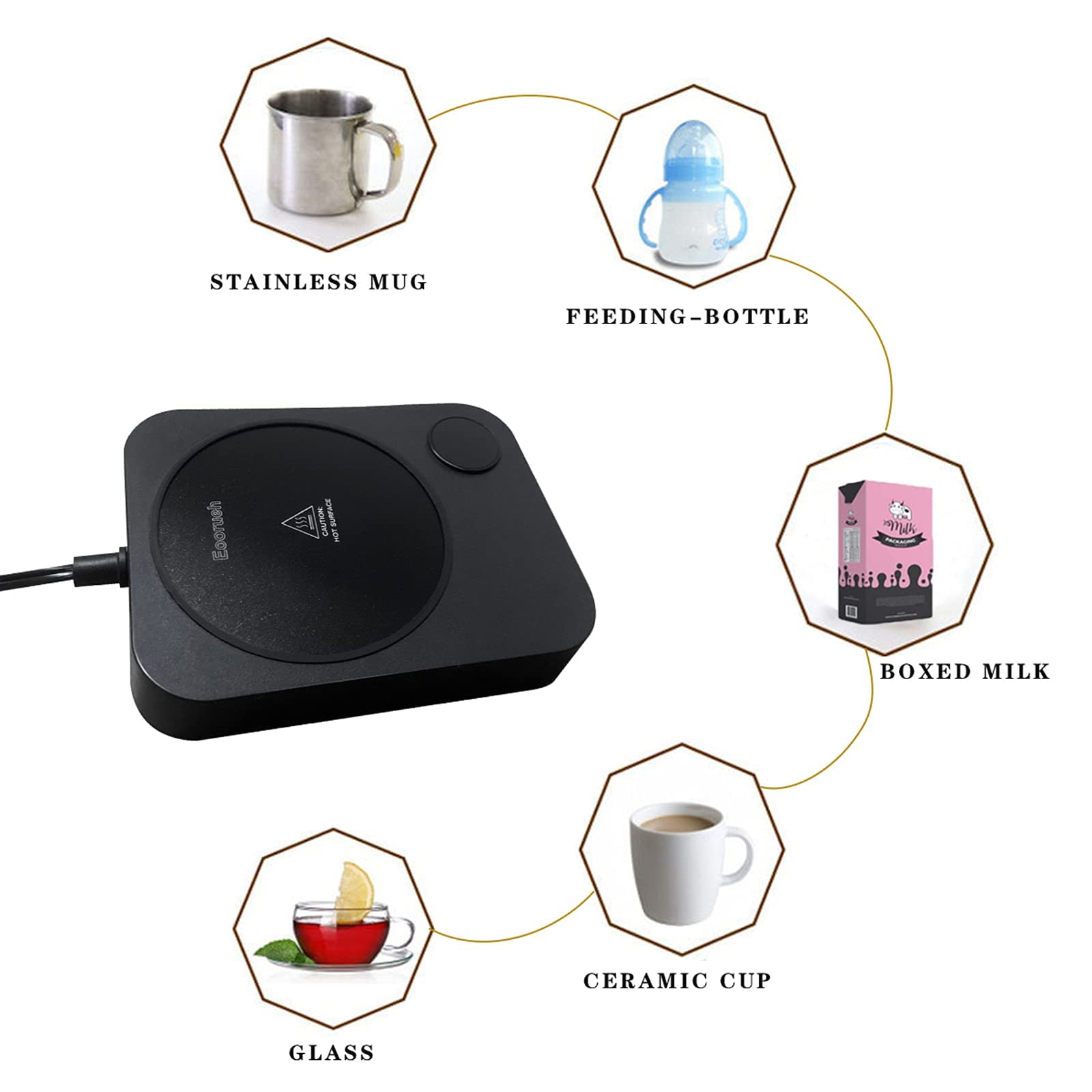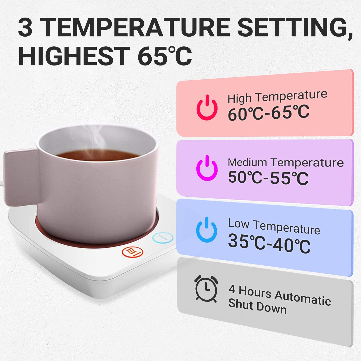 Dieser elektrische Tassenwärmer ist ein absoluter Game-Changer für alle Heißgetränke-Liebhaber! Mit 4 Temperatureinstellungen (40℃, 55℃, 65℃, 80℃) kannst du deinen Kaffee, Tee oder Kakao genau auf der richtigen Temperatur halten. Egal ob Glas-, Keramik- oder Metalltassen - alles wird gleichmäßig warm gehalten. Besonders praktisch: Die 8-Stunden Auto-Off Funktion - wenn du ihn mal vergisst auszuschalten, macht er das automatisch. Noch ein cooles Feature: Er kann auch als Kerzenwärmer verwendet werden! Einfach Duftkerze draufstellen und binnen Sekunden verbreitet sich der wohlige Duft im ganzen Raum. Die wasserfeste Oberfläche ist super leicht zu reinigen - einfach abwischen fertig. Perfekt fürs Home Office, die Küche oder den Schreibtisch. Ob für Babynahrung, Suppe oder einfach nur um den Kaffee länger genießbar zu halten - dieses Teil ist extrem vielseitig. Ein super Geschenk für Kollegen, Freunde oder Familie - wer mag schon kalten Kaffee? Einfach anschließen, Temperatur wählen und nie wieder kalte Getränke!