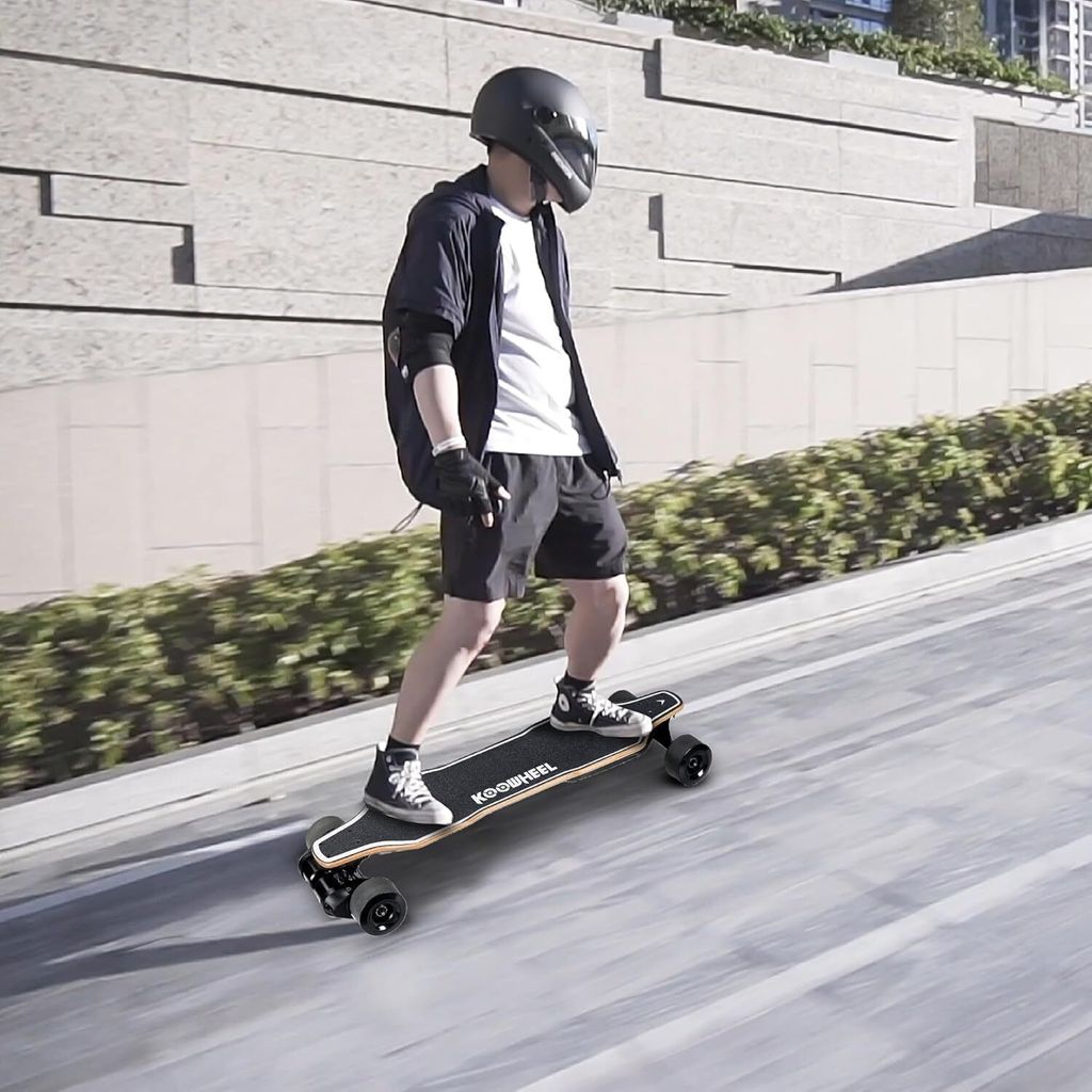 Alter, dieses E-Skateboard ist ja mal der absolute Hammer! Mit zwei 550W Motoren - also insgesamt 2000W Power - das schafft selbst 20° Steigungen! Bis zu 45 km/h schnell - perfekt für Stadtpendeln oder Offroad-Abenteuer. Der 7,5Ah Akku bringt dich 30-35 km weit - mit Echtzeit-Anzeige auf der Fernbedienung. Die 105mm Cloudwheels geben maximalen Grip und das Board ist IPX4 wasserdicht. Trägt bis zu 130 kg - also für die meisten Leute perfect. Die 2,4G OLED-Fernbedienung hat 4 Geschwindigkeitsstufen und Brems-Priorität - super einfach auch für Anfänger. Das 8-lagige Ahornholz-Deck ist stabil und die 8-Zoll-Gussachsen sorgen für Sicherheit. Komplett mit Board, T-Werkzeug und Ladegerät - in 3,5 Stunden voll aufgeladen. Einfach einsteigen und ab geht's!