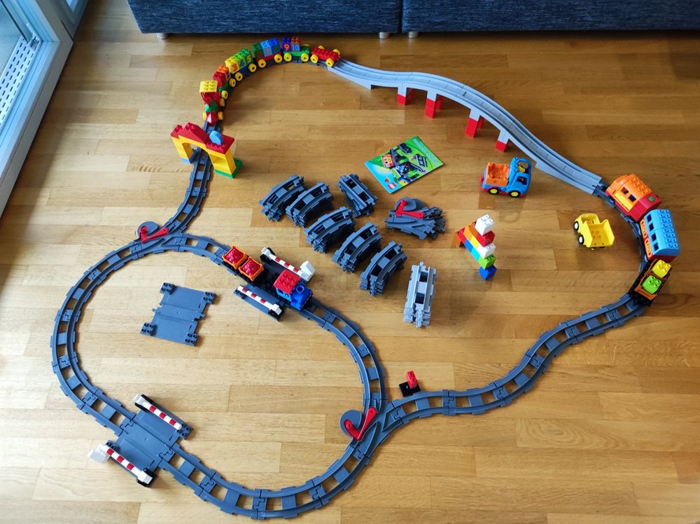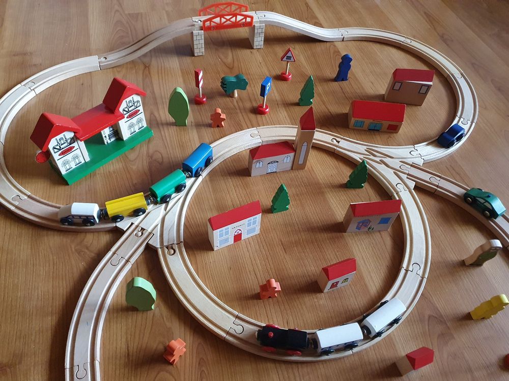 Tschu-tschu-tschu, hier kommt der MOONTOY Express! Dieses 37-teilige Eisenbahn-Set bringt Kinderaugen zum Leuchten. Die Lokomotive hat ein cooles rotes Licht und fährt per Knopfdruck los. Die Waggons verbinden sich magnetisch - super einfach für kleine Kinderhände. Mit Brücke, Schildern, Figuren und allem was zu einer richtigen Stadt gehört. Die Schienen kannst du immer wieder neu zusammenbauen - der Kreativität sind keine Grenzen gesetzt! Aus ungiftigem ABS-Kunststoff mit abgerundeten Ecken. Perfekt für Jungen und Mädchen ab 3 Jahren. Fördert Feinmotorik, räumliches Denken und die Fantasie. Ideal als Geburtstagsgeschenk oder für unter den Weihnachtsbaum!