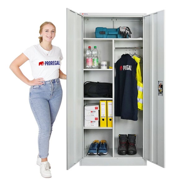 Mega Storage-Lösung gefällig? Der PROREGAL Elephant Flügeltürenschrank im 3er-Set ist dein neuer Organisations-Profi! Jeder Schrank misst stolze 185x120x40 cm (HxBxT) und bietet mit 4 höhenverstellbaren Fachböden total flexible Stauraum-Lösungen. Aus robustem, pulverbeschichtetem Stahl gebaut - die halten echt was aus! Die abschließbaren Flügeltüren schützen deine Werkzeuge, Dokumente oder Wertgegenstände vor neugierigen Blicken. Besonders clever: Die Verstärkungsstange an den Fachböden gibt extra Stabilität, selbst bei schwerer Beladung. Mit dabei: Handschuh, Schraubendreher zum Aufbau und natürlich 2 Schlüssel pro Schrank. In dekorativem Schwarz (RAL 9005) sehen die Schränke sowohl im Büro als auch in Werkstatt oder Garage super aus. Und mit 5 Jahren Garantie machst du nichts verkehrt! Platz für bis zu 70 Ordner pro Schrank - mehr Organisation geht kaum!