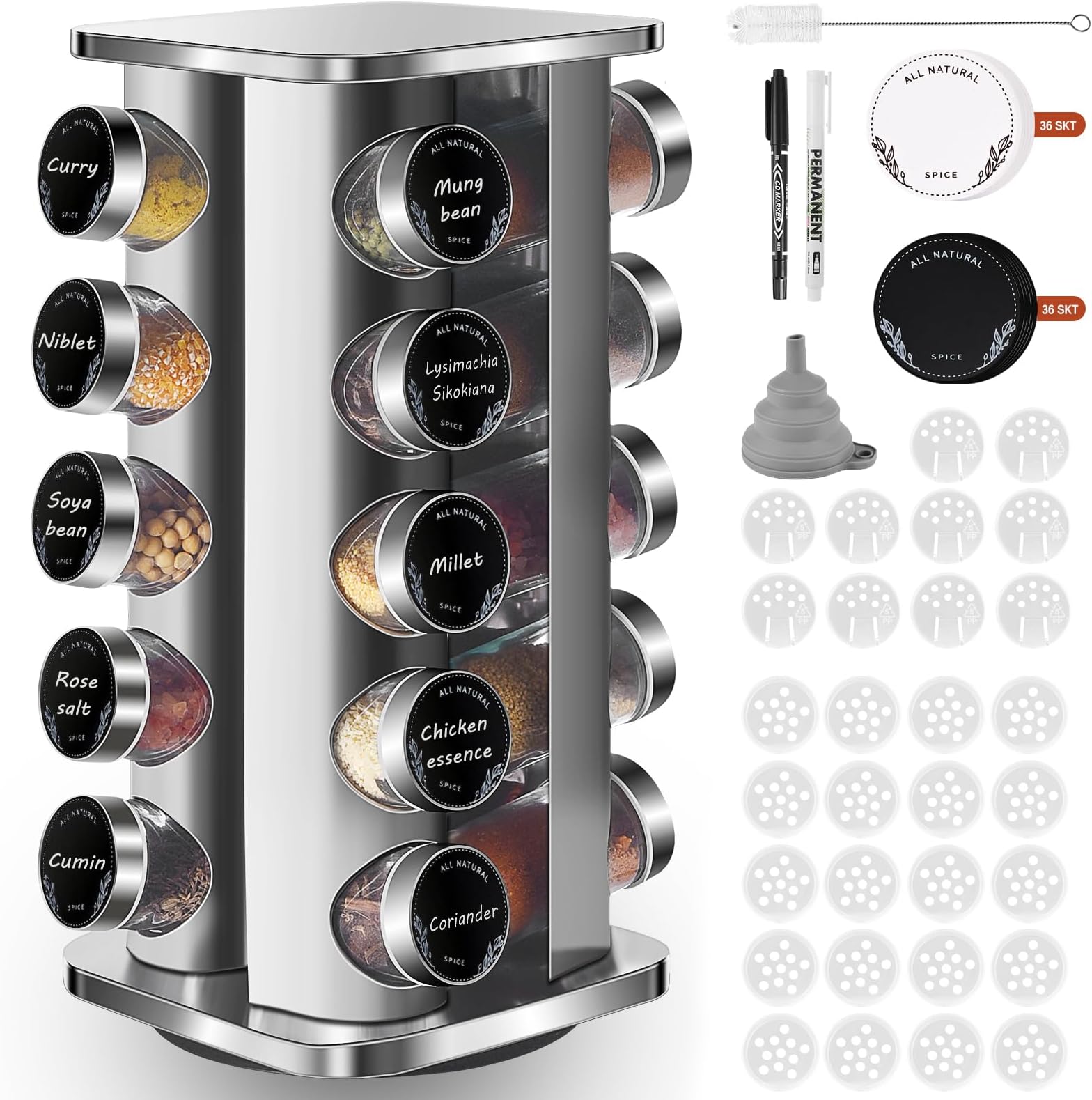 Das Karussell dreht sich sanft um 360 Grad - so hast du alle Gewürze immer griffbereit. Im Lieferumfang sind 20 Gewürzgläser mit praktischen Streueinsätzen und luftdichten Verschlüssen.