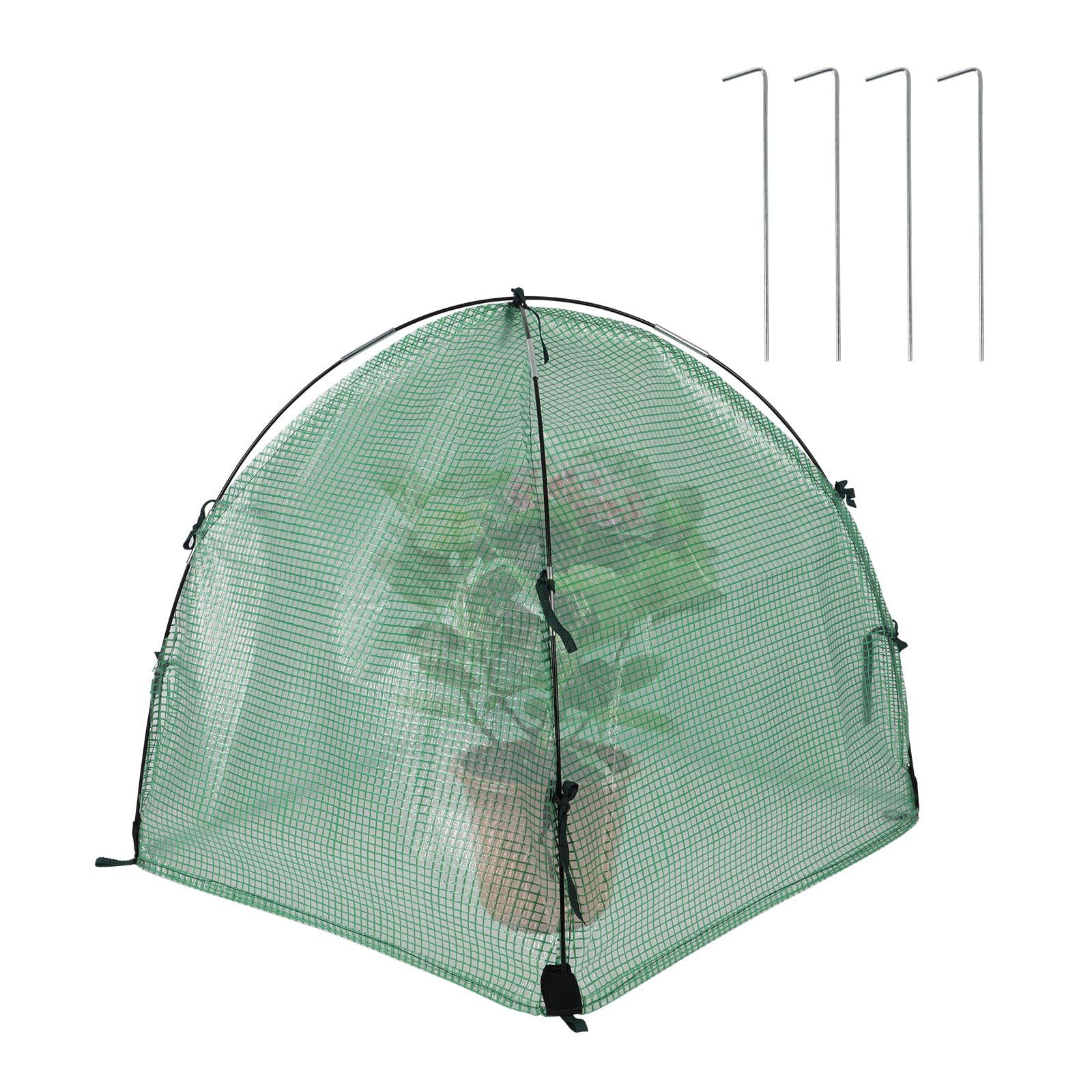 Deine Pflanzen überstehen jeden Winter! Dieses praktische Foliengewächshaus von en.casa schützt deine Lieblingspflanzen vor Kälte, Frost und unerwünschten Tierbesuchern. Der stabile Stahlrahmen und die robuste PE-Folie (135g/m²) halten auch stärkerem Wind stand.\\n\\nAufbau ist total einfach: Rahmen zusammenschieben, Folie überziehen, mit den mitgelieferten Erdspießen oder Abspannleinen sichern - fertig! Das Spitzdach lässt Regenwasser super ablaufen, und durch den Reißverschluss kommst du easy an deine Pflanzen ran.\\n\\nDas aufrollbare Netzfenster sorgt für frische Luft ohne dass Insekten reinkommen. Ob auf dem Balkon, der Terrasse oder im Garten - dieses Gewächshaus ist immer die richtige Wahl für deine grünen Schätze.\\n\\nMaße: 183 x 160 cm\\nMaterial: Stahlrahmen + PE-Folie\\nFarbe: Grün\\nMit Reißverschluss und Netzfenster\\nLieferung inkl. Erdspieße und Abspannleinen\\n\\nIdeal für: Tomaten, Kübelpflanzen, Kräuter, Jungpflanzen - alles was Kälte nicht mag!