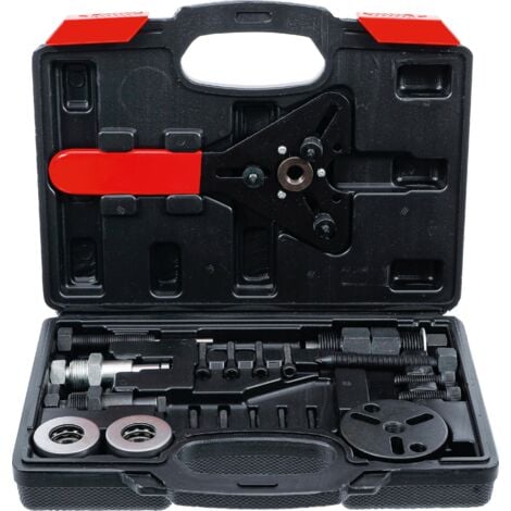 Für alle Kfz-Mechaniker und Heimwerker: Dieses Spezialwerkzeug entfernt und montiert Klimakompressor-Kupplungen schnell und sicher! Aus robustem Stahl gefertigt, ist es trotzdem leicht und handlich (20,8x11,5x4,2 cm). Spart jede Menge Zeit bei der Demontage und Installation - einfach aufsetzen, drehen, fertig. Das kompakte Design passt in jeden Werkzeugkoffer. Perfekt für die Wartung von Auto-Klimaanlagen und die Reparatur von Klimakompressoren. Ein unverzichtbares Tool für jede Werkstatt - damit bist du einfach schneller und effizienter!