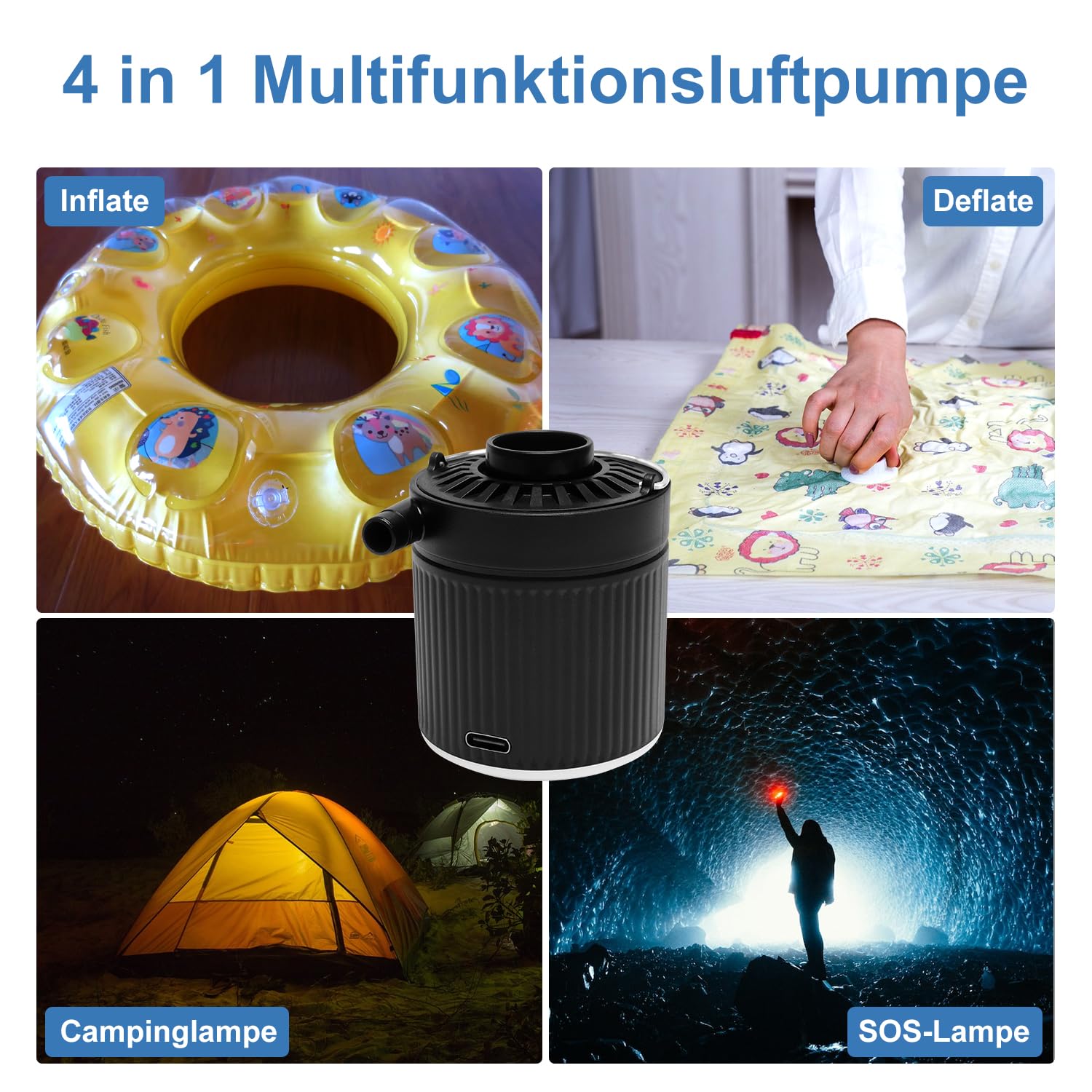 • Elektrische Luftpumpe 2000mAh - Aufpumpen & Entleeren Für Camping & Strand