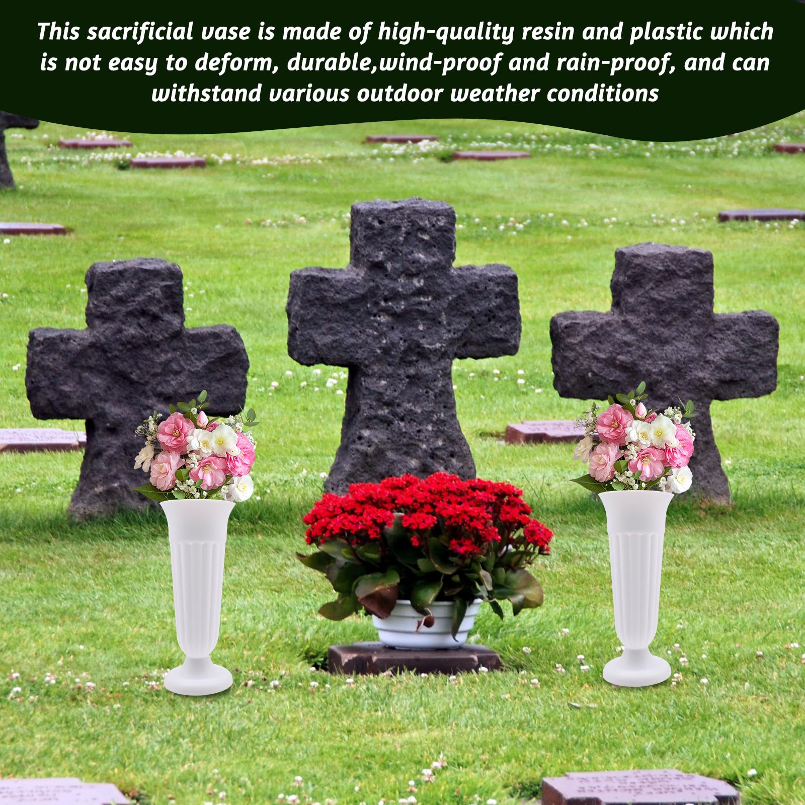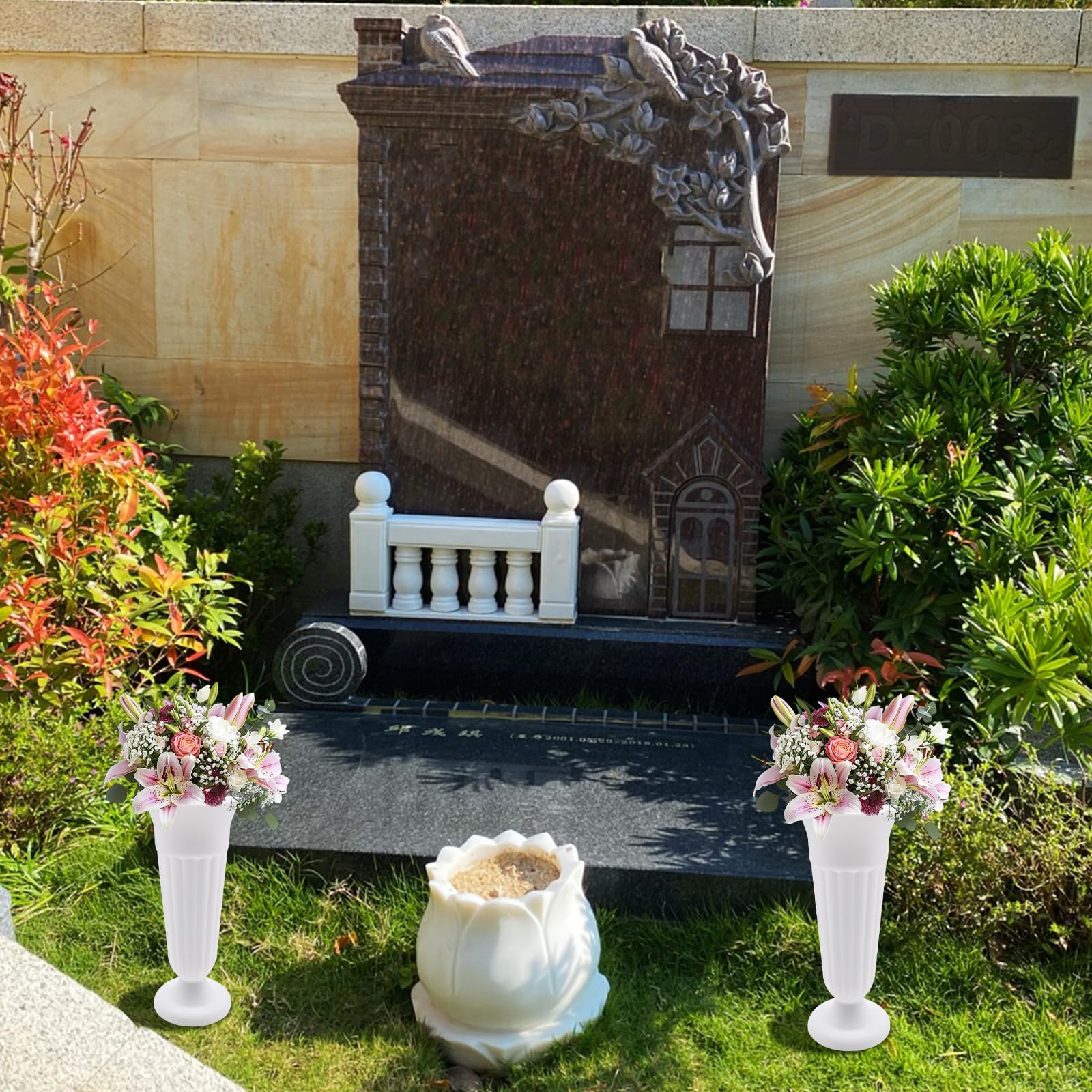Eine würdige Dekoration für das Grab deiner Lieben! Diese praktischen Grabvasen mit Erdspieß machen die Grabpflege ganz einfach. Im 2er-Set geliefert, jeweils 21cm hoch und in dezentem Grün. Der 14cm lange Metallspieß wird einfach in die Erde gesteckt - fest und sicher, auch bei Wind. Aus wetterfestem Kunststoff, der Sonne, Regen und Frost standhält. Die wasserdichte Ausführung verhindert lästiges Auslaufen bei frischen Blumen. Perfekt für den Friedhof, aber auch für den heimischen Garten oder die Terrasse. Einfach Blumen arrangieren und aufstellen - eine schöne Art, Erinnerungen zu pflegen. Ideal für besondere Tage wie Muttertag, Weihnachten oder Gedenktage. Eine würdevolle und praktische Lösung für die Grabgestaltung.