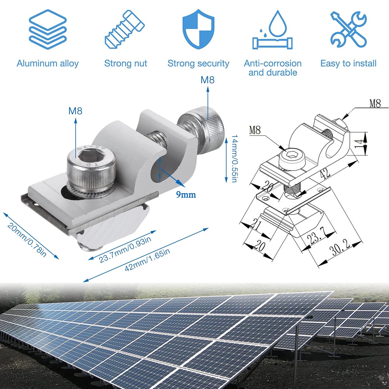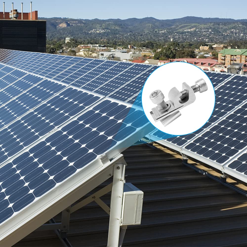 Für alle Solar-Installateure! Diese Erdungsclips sind essentiell für eine sichere PV-Anlage. Aus eloxiertem Aluminium - korrosionsbeständig und UV-stabil. Maße: 5,9 x 2,1 x 2,9 cm - perfekt für die meisten Solarmodule mit Einfassung. Einfach zu installieren - keine zusätzlichen Werkzeuge nötig. Kompatibel mit Aluminium-PV-Schienen, C-Trägern, U-Trägern und H-Trägern. Für Dach, Boden und Carport-Montagen geeignet. Die präzise Verarbeitung ohne Grate sorgt für perfekten Sitz. Mit Rillenboden-Design für bessere Reibung. Im Set: 10 Stück Erdungsclips inklusive Befestigungsmuttern und Schrauben. Ideal für täglichen Gebrauch und Ersatzbedarf. Mach deine Solarinstallation sicher und professionell - mit diesen hochwertigen Erdungsklemmen. Ein Muss für jede PV-Anlage!