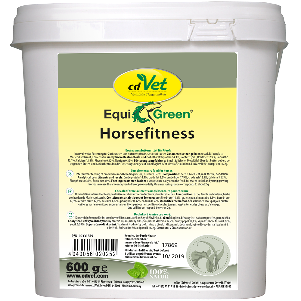 Dein Pferd hat Probleme mit den Harnwegen? Der EquiGreen HarnwegeMix ist genau das Richtige! Diese 100% natürliche Kräutermischung unterstützt dein Pferd bei Harnwegsproblemen und fördert die Nierenfunktion. Enthalten sind hochwertige Zutaten wie Taubnesselkraut, Brombeerblätter, Ackerschachtelhalm, Propolis und viele andere wertvolle Kräuter. Ohne künstliche Zusatzstoffe, Füllstoffe oder Geschmacksverstärker - nur pure Natur! Die Mischung wurde von Tierheilpraktikern, Tierärzten und erfahrenen Pferdebesitzern entwickelt und entspricht dem deutschen Qualitätsstandard. Einfach täglich 2,3g pro 100kg Körpergewicht für 14-30 Tage dem normalen Futter beimischen. Ein Teelöffel entspricht etwa 2,3g - also super einfach zu dosieren. Die natürlichen Inhaltsstoffe fördern den Harndrang und helfen so, schädliche Bakterien auszuspülen. Besonders geeignet für harnwegeempfindliche Pferde die immer wieder mit Problemen zu kämpfen haben. Dein Pferd wird es dir danken!