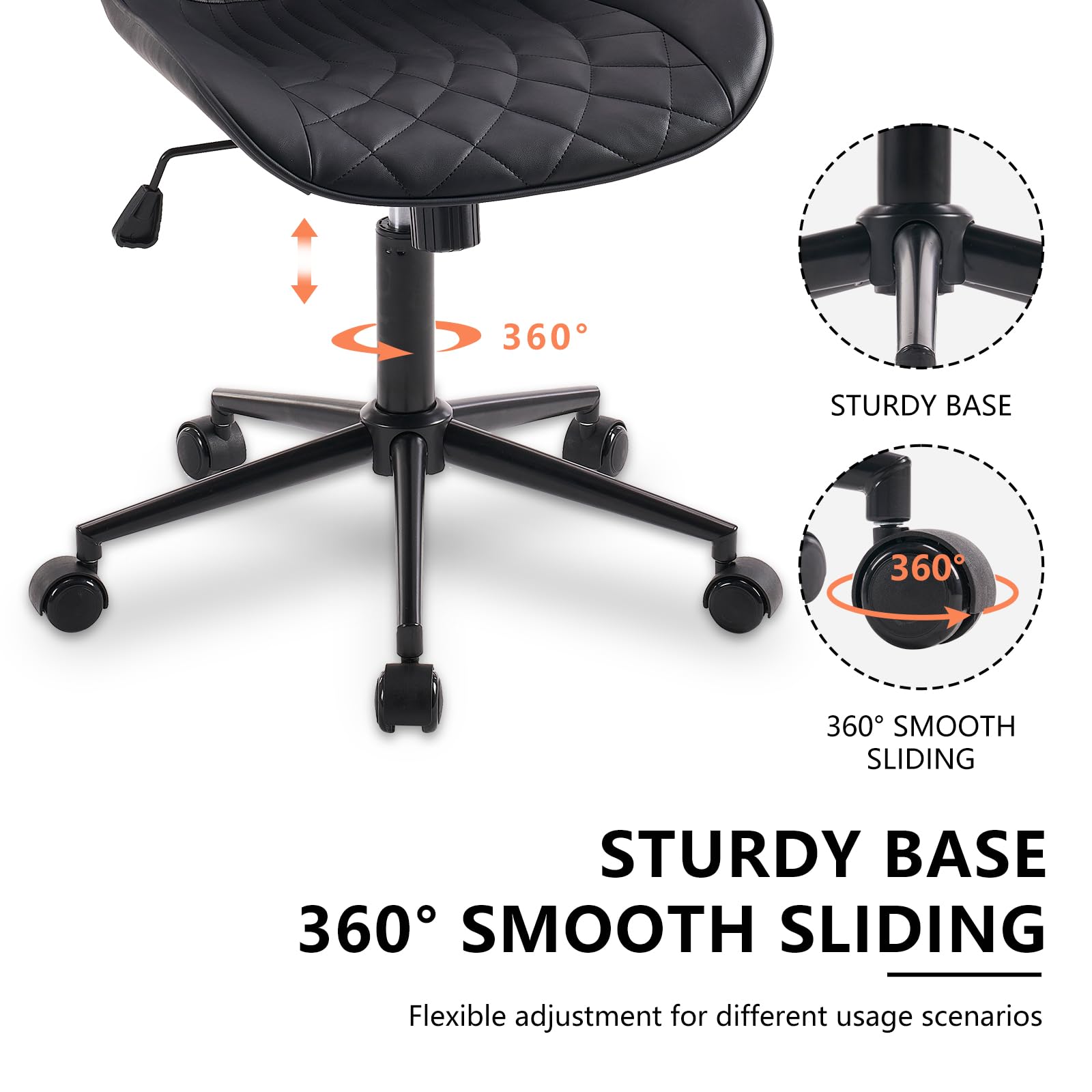 Bürostuhl Ohne Armlehnen Schwarz - Ergonomischer Drehstuhl Bis 136kg - PU Leder Homeoffice Stuhl 360° Drehbar
