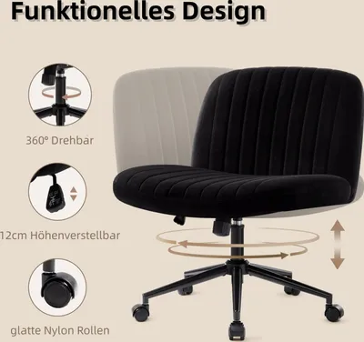 Arbeiten in purem Komfort! Dieser elegante Bürostuhl ohne Armlehnen ist perfekt fürs Homeoffice oder Büro. Aus wasserdichtem PU-Leder das sich super reinigen lässt. Der hochdichte Schaumstoff in Sitzfläche und Rückenlehne sorgt für optimalen Sitzkomfort. Höhenverstellbar von 82-92cm - passt zu jedem Schreibtisch. Die Rückenlehne neigt sich von 90° bis 135° für entspanntes Arbeiten oder Pausen. Das stabile Metallgestell trägt bis zu 136kg und die 5 geräuscharmen Rollen gleiten mühelos. Im modernen Mid-Century-Design mit dekorativer Walnuss-Holzplatte. Einfache Montage in 20-30 Minuten mit beiliegender Anleitung. Perfekt für Arbeitszimmer, Konferenzräume, Wohnzimmer oder Bibliothek. Schlichter Style der in jedes Interior passt. Mach deinen Arbeitsplatz zum Wohlfühlort!