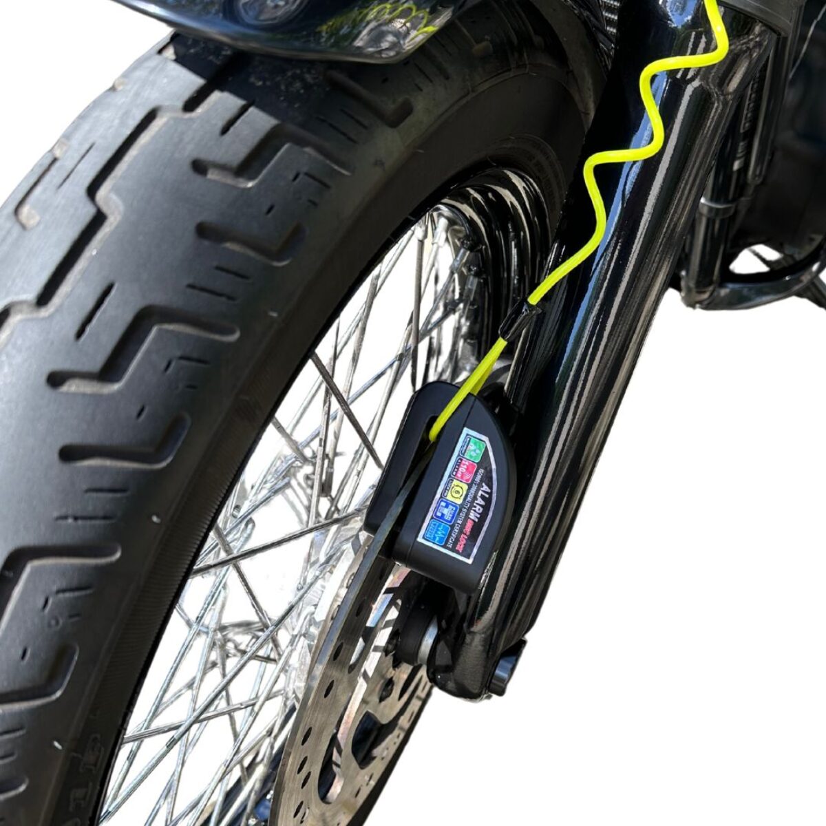 Kennst du das? Du steigst auf dein Motorrad und vergisst, das Bremsscheibenschloss abzunehmen? Dieses praktische Erinnerungskabel sorgt dafür, dass dir das nicht mehr passiert! Das 120 cm lange Seil verbindet Schloss und Lenker - so siehst du sofort, wenn das Schloss noch drin ist.