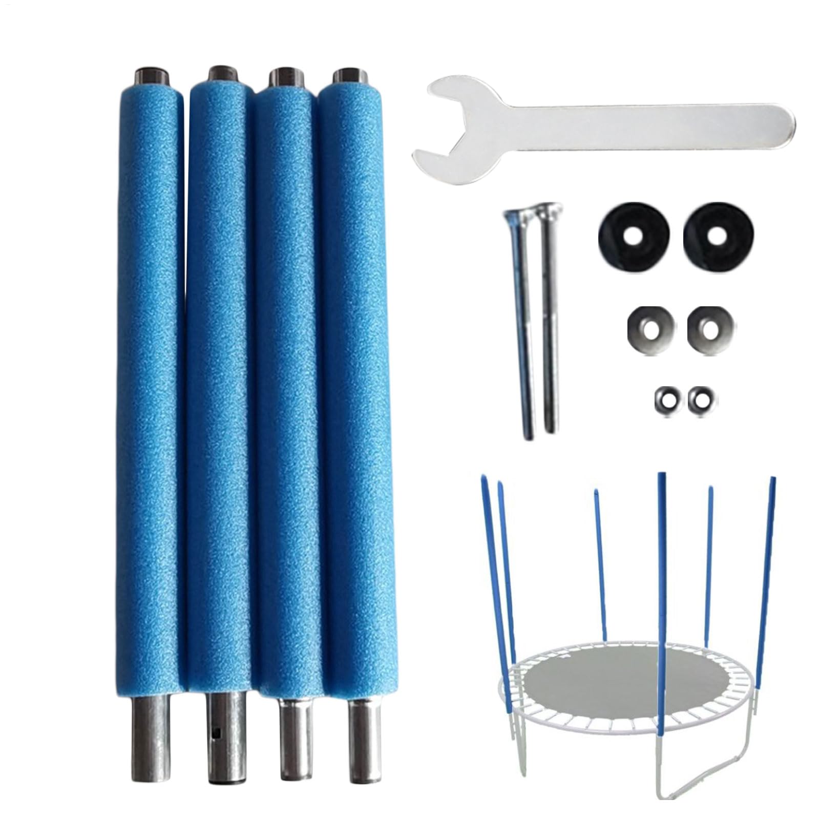 Sicherheit für dein Trampolin! Diese Ersatzstangen von Perfeclan sind die perfekte Lösung für beschädigte oder abgenutzte Netzstangen. Das 2-teilige Design (obere Stange 101cm, untere Stange 101,5cm) ermöglicht einfache Montage und passt für Trampoline von 2,44 bis 4,88 Meter Durchmesser. Die hochdichte Schaumstoffhülle schützt vor Verletzungen bei Stößen und macht das Spielen am Trampolinrand sicherer. Aus verzinktem, hochfestem Metall gefertigt, garantieren die Stangen maximale Stabilität und Langlebigkeit. Im Lieferumfang sind alle notwendigen Montagehalterungen und eine Stangenkappe enthalten - alles was du für die Reparatur brauchst. Kompatibel mit Trampolinen mit rundem Rahmen und Top-Gehäusesystemen. Einfache Installation, professioneller Direktersatz für mehr Sicherheit und Spaß beim Springen. Mach dein Trampolin wieder komplett sicher für deine Kinder!