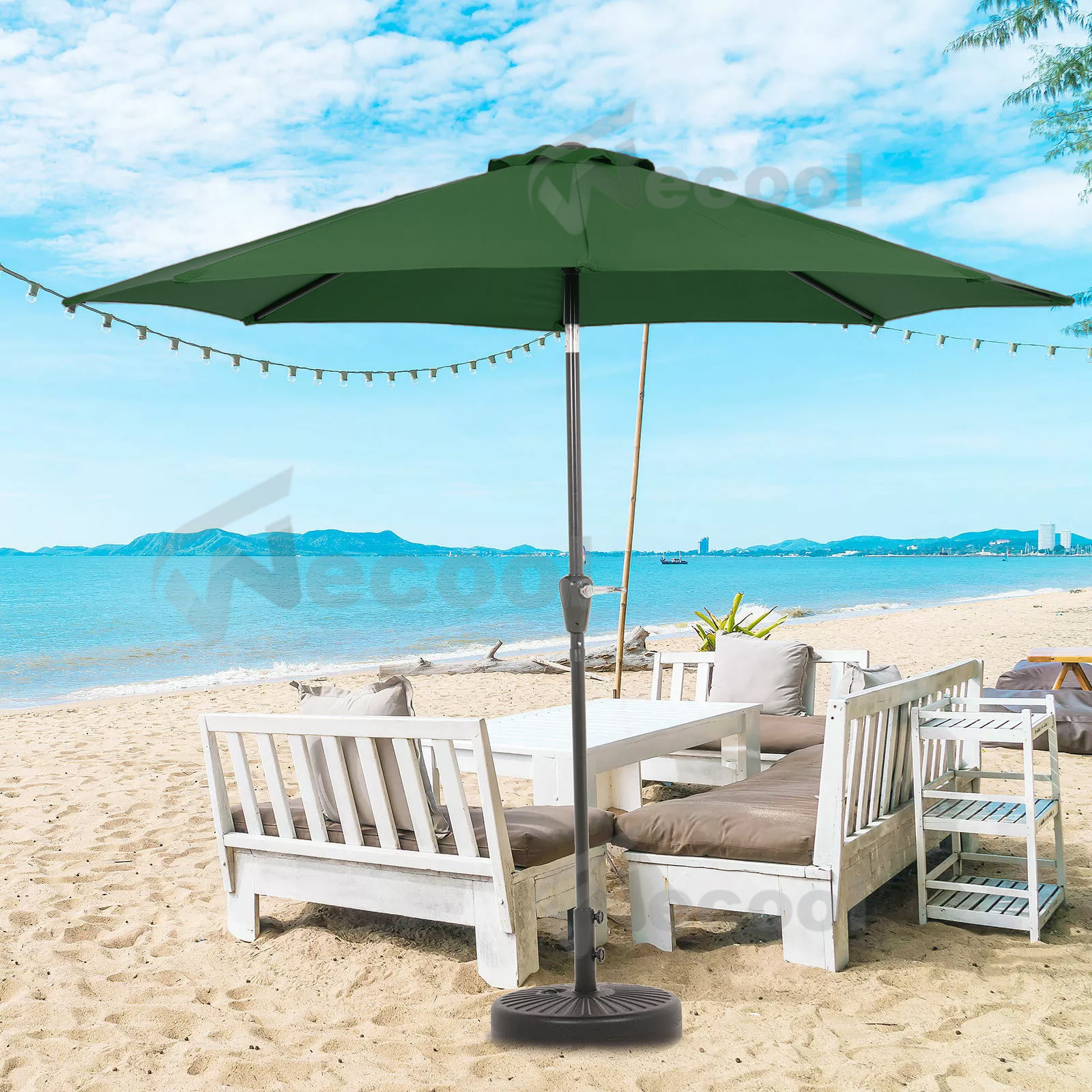 Aus robustem 160g Polyestergewebe gefertigt, bietet der Bezug zuverlässigen UV-Schutz und hält die Sonne dort, wo sie hingehört: über dir! Die Lüftungsschlitze oben sorgen für Luftzirkulation und verhindern, dass der Schirm bei Wind umkippt.