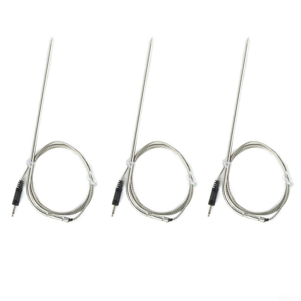 Nie wieder durchgegartes Steak! Diese 3 Temperatursonden sind perfekte Ersatz- oder Zusatzsonden für dein Grillthermometer. Mit DC2.5 Anschluss (bitte Kompatibilität prüfen!) und 130cm Kabellänge. Die Sonden halten kurzzeitig bis zu 300°C stand, die Hochtemperatur-Drähte sind PTFE-isoliert und mit Edelstahlgeflecht geschützt. Perfekt für Grillen, Braten, Backen - egal ob Steak, Truthahn oder andere Köstlichkeiten. Der schlanke Kabeldurchmesser passt problemlos in Ofentüren ohne Wärmeleck. Einfach mit Leitungswasser oder feuchtem Tuch reinigen. Für perfekte Garergebnisse jedes Mal - ob Profi-Griller oder Hobby-Koch!