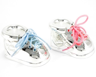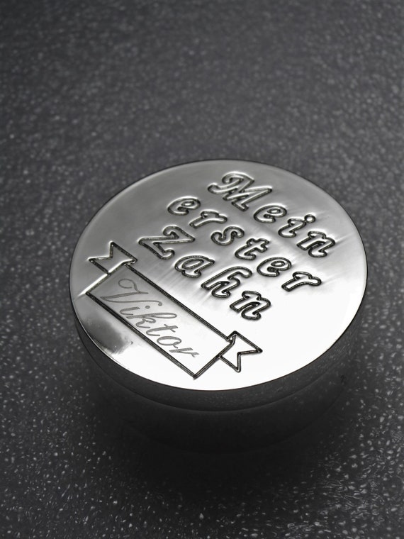 Bewahre die ersten Zähnchen deines Kindes in dieser niedlichen, versilberten Dose sicher auf! Mit nur 4 cm Höhe und 2 cm Durchmesser ist sie handlich und passt perfekt ins Kinderzimmer, aufs Babyregal oder in die Erinnerungsbox. Aus Metall gefertigt und mit einer anlaufgeschützten Versilberung versehen, behält sie lange ihren schönen Glanz. Die glatt polierte Oberfläche und die runde Form machen sie zu einem zarten Erinnerungsstück, das die Kindheit symbolisiert. Ideal als Geschenk zur Geburt, Taufe oder einfach so - eine bleibende Erinnerung an besondere Momente. Achtung: Nicht spülmaschinengeeignet! Schaff dir mit dieser charmanten Dose einen kleinen Schatz für die Ewigkeit, den dein Kind später bestimmt lieben wird.