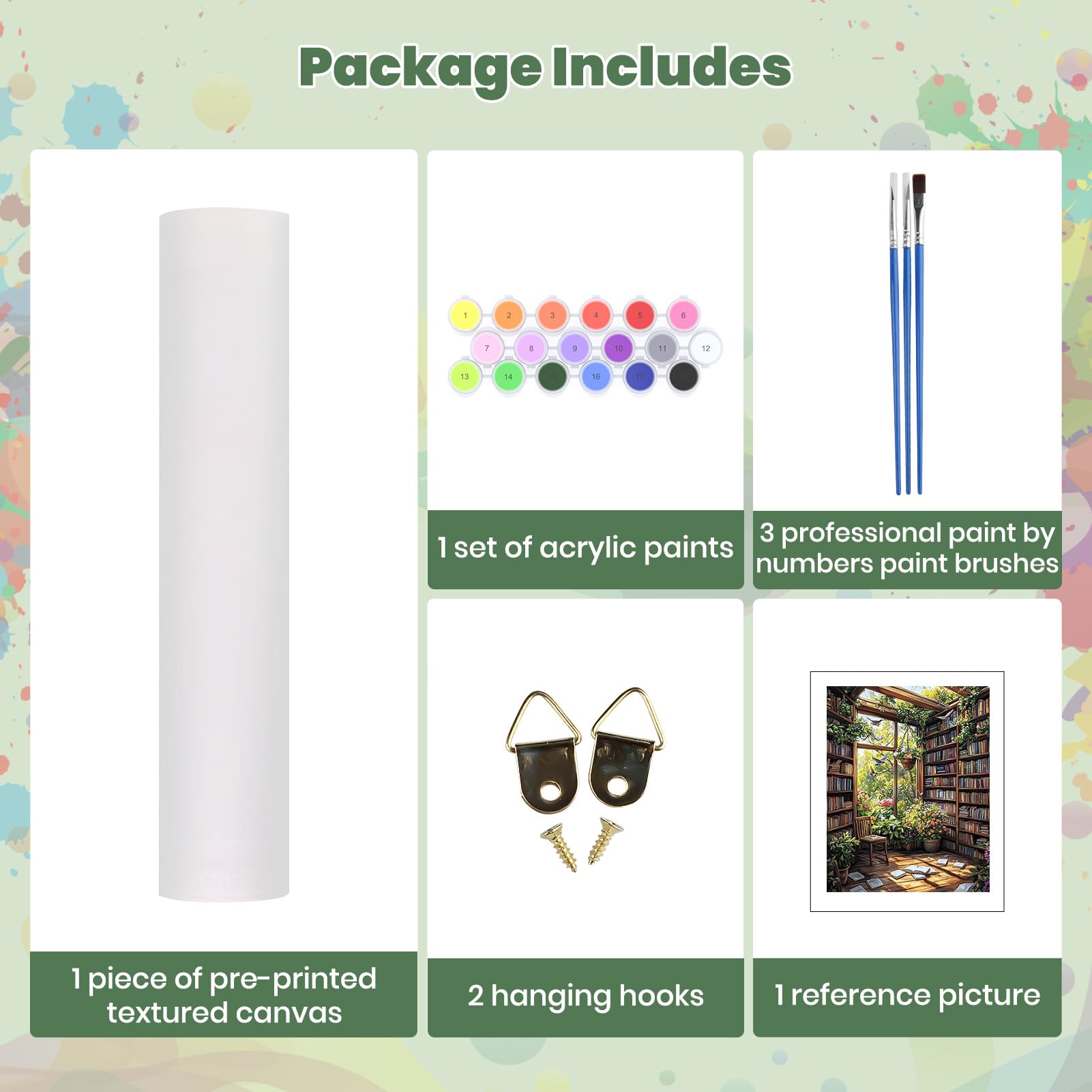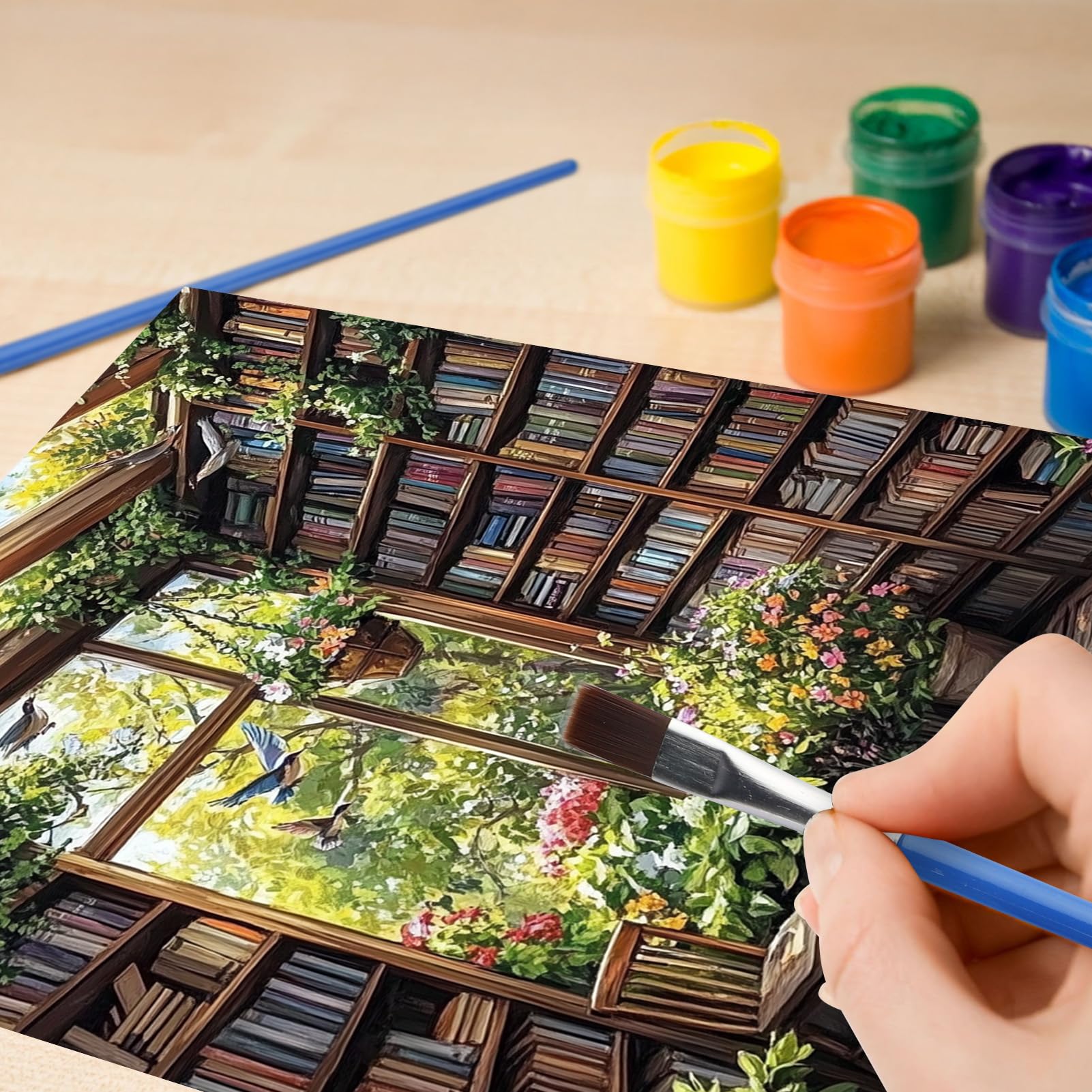 Entdecke den Künstler in dir mit diesem wunderschönen Malen nach Zahlen Set! Das Motiv 'Bibliothek und Pflanzen' in 40x50cm Größe bringt Entspannung und kreative Freude in dein Zuhause. Das Komplett-Set enthält alles, was du brauchst: eine vorbedruckte strukturierte Leinwand, Acrylfarben, 3 professionelle Pinsel, Aufhängehaken und ein Referenzbild. Die hochauflösende Leinwand hat eine gleichmäßige Textur, sodass du die Zahlen und Buchstaben leicht lesen kannst. Die lebendigen Farben wurden fachmännisch gemischt und erzeugen eine bemerkenswerte Tiefe - fast wie ein echtes Ölgemälde! Perfekt für Anfänger, denn du brauchst keine Vorkenntnisse. Einfach die Nummern der Farben mit denen auf der Leinwand abgleichen und die entsprechenden Flächen ausmalen. Ideal zum Stressabbau und um Geduld zu entwickeln. Auch toll als Familienaktivität am Wochenende - fördert die Zusammenarbeit zwischen Eltern und Kindern. Wenn du fertig bist, hast du ein wunderschönes Kunstwerk für dein Zuhause oder ein besonderes Geschenk für Liebste.