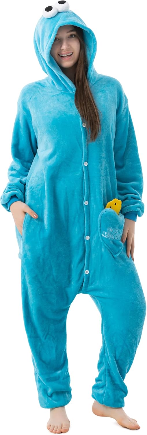 Wie süß ist denn dieser Tier-Onesie! Ob als kuscheliger Pyjama für zu Hause oder als witziges Kostüm für Karneval und Halloween - dieser Ganzkörper-Strampler aus weichem Flanell-Plüsch hält dich richtig warm und gemütlich. Mit praktischen Knöpfen vorne und Reißverschluss am Hintern ist das An- und Ausziehen super easy. Es gibt verschiedene niedliche Tier-Designs in den Größen S bis XL, die für Körpergrößen von 148 cm bis 188 cm passen. Die elastischen Bündchen an Hand- und Fußgelenken sorgen für perfekten Sitz und Bewegungsfreiheit. Egal ob für Männer oder Frauen, dieser Unisex-Onesie ist perfekt für gemütliche Filmabende, Partys oder Cosplay-Events. Einfach mal ausprobieren und sich wie ein flauschiges Tier fühlen - das macht einfach Laune und sorgt für Lacher!