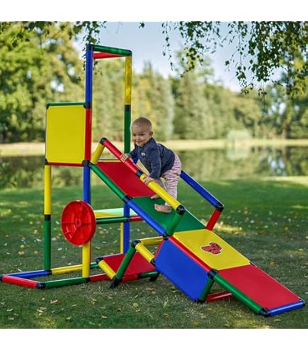 Das Quadro Upgrade Kit Home ist wie neues Spielzeug für das vorhandene Klettergerüst! Mit 188 Teilen erweiterst du dein Quadro um flache Stufen (ca. 15cm hoch) und niedrige Babyrutschen. Perfekt für die Kleinen ab 6 Monaten - so können sie sanft und sicher das Klettern lernen. Alles ist kompatibel mit allen Quadro-Baukästen seit 1979 - geniales System! Die UV-stabilen PP/HDPE-Teile halten auch draußen und sind pflegeleicht. TÜV/GS-geprüft nach EN 71 mit rutschhemmenden Platten und abgerundeten Kanten. Der Zusammenbau ist im Stecksystem ohne Sägen oder Bohren - also schnell umgebaut wenn die Kinder größer werden. In der Quadro Modelldatenbank findest du viele Bauanleitungen mit Altersempfehlungen. Made in Germany mit 9 Jahren Qualitätsversprechen! Ob drinnen im Kinderzimmer oder draußen im Garten - dieses Set wächst mit deinen Kindern mit. Aus 10 Platten, 2 Halbplatten, 29 Rohren und jeder Menge Verbindern baust du immer neue Abenteuerwelten. Einfach genial für die motorische Entwicklung!